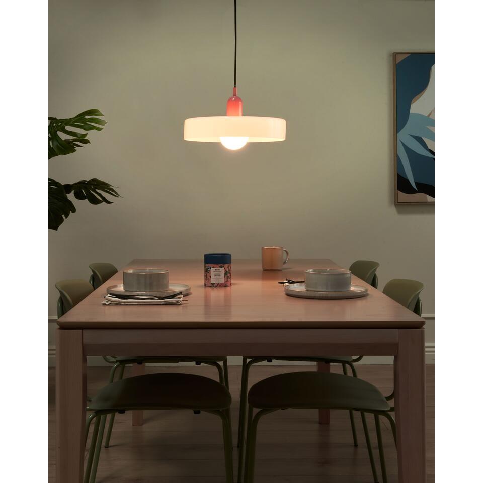 Lampe pendante ronde. Cette lampe d'appoint apporte une touche de fraîcheur à votre système d'éclairage, en combinant un style moderne avec une inspiration rétro subtile. Elle se caractérise par un abat-jour extérieur arrondi en verre et un délicat abat-jour intérieur en forme de globe qui encadre joliment l'ampoule. Parfaite pour un couloir, une cuisine ou une salle à manger, elle offre un look élégant.