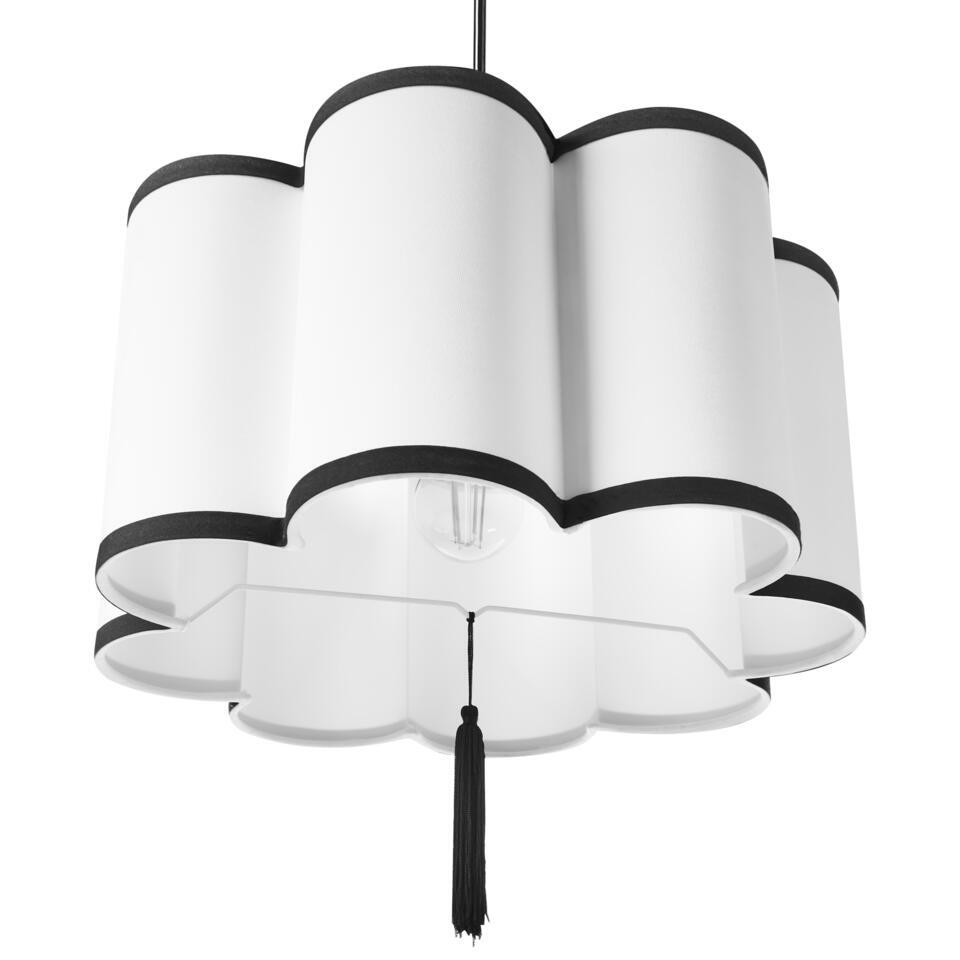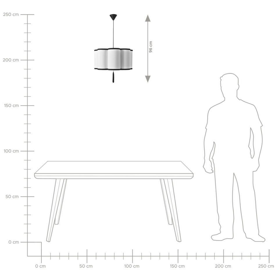 Lampe suspendue avec abat-jour en nylon. Ajoutez une touche d'élégance à votre salle à manger ou à votre espace de vie avec cette lampe suspendue sophistiquée. L'abat-jour, fabriqué en nylon de haute qualité, présente un design moderne et sculptural qui crée un jeu d'ombre et de lumière saisissant. La bordure noire minimaliste complète l'abat-jour blanc doux, ce qui en fait une pièce polyvalente qui s'associe sans effort à divers styles d'intérieur. L'ajout d'une élégante houppe ajoute une touche inattendue, renforçant son attrait décoratif.