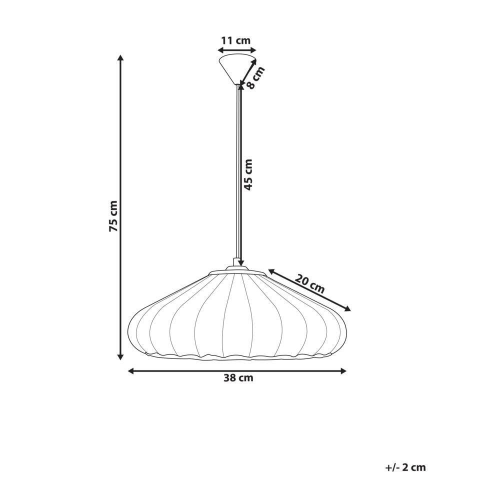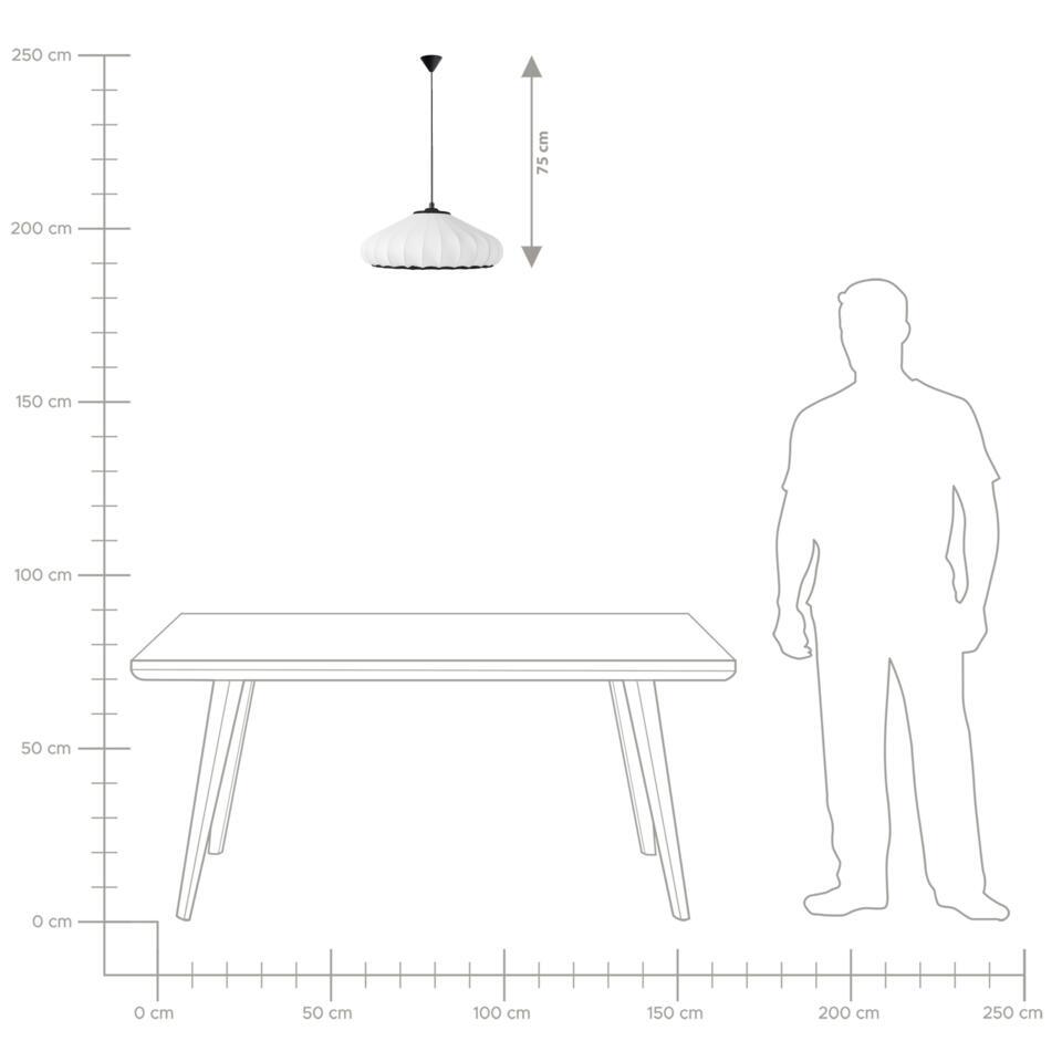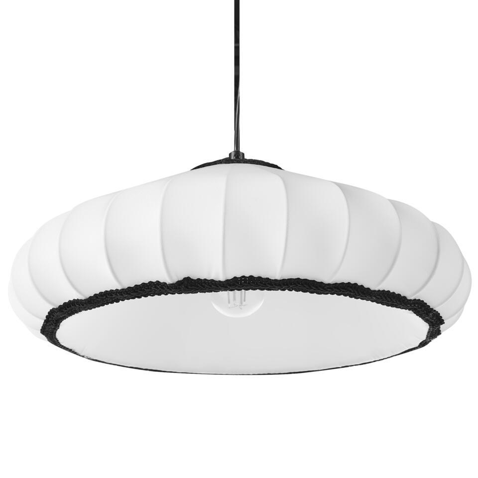 Lampe suspendue avec abat-jour en nylon. Ajoutez une touche de charme à votre espace avec cette lampe suspendue au design élégant. Son abat-jour en nylon plissé, souligné par des bordures noires contrastantes, apporte une esthétique subtile d'inspiration vintage à votre intérieur. Les courbes douces de l'abat-jour diffusent la lumière de manière homogène, créant une ambiance chaleureuse et accueillante, parfaite pour les salles à manger ou les coins cosy. À la fois élégante et fonctionnelle, cette lampe est un choix polyvalent pour toute décoration intérieure.
