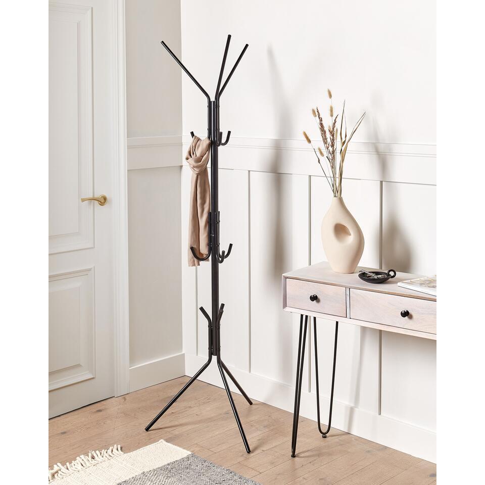 Porte-manteau d'intérieur décoratif. Ce porte-manteau en acier est équipé de 12 crochets de différentes hauteurs, offrant ainsi un espace de rangement polyvalent pour les manteaux, les chapeaux et les sacs de toutes tailles. Sa conception innovante permet de ranger facilement tous les vêtements, des vestes d'enfants aux vêtements d'extérieur plus volumineux. La construction élégante en métal ajoute une touche contemporaine à n'importe quel couloir ou entrée, tandis que la base robuste garantit la stabilité. Parfait pour les familles actives ou pour tous ceux qui cherchent à organiser leur espace, ce porte-manteau est à la fois fonctionnel et tendance.