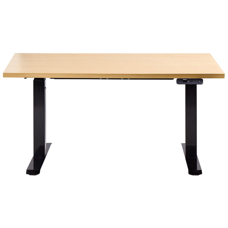 Bureau assis-debout à hauteur ajustable. Il est doté d'un réglage électrique de la hauteur avec trois réglages mémorisables, permettant des transitions fluides et silencieuses entre la position assise et debout, ce qui le rend adapté à tout espace de travail ou d'étude. Le panneau de commande comprend un port USB intégré pour recharger facilement vos appareils. Ses larges pieds et son capteur anti-collision offrent une stabilité et une sécurité supérieures pendant l'utilisation. Le plateau recouvert de mélamine et soutenu par un cadre en acier robuste garantit une grande solidité, une capacité de charge élevée et une fiabilité au quotidien.