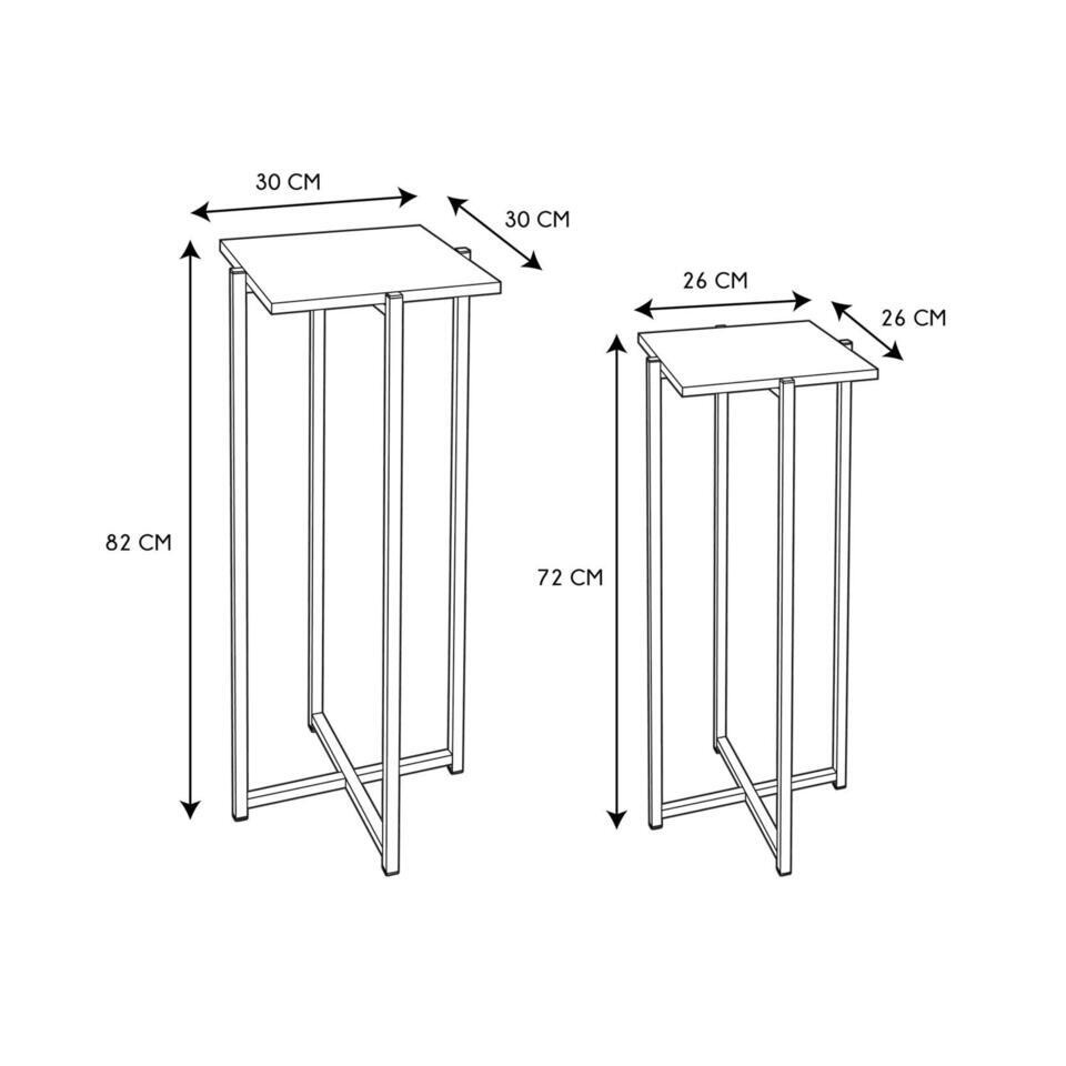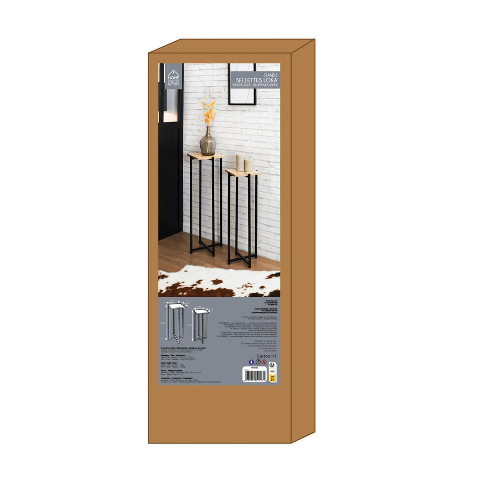 Table d'appoint, 2x pieces de Home Deco Factory. Cet ensemble de 2 tables d'appoint de Home Deco Factory apporte style et fonctionnalite a votre interieur. Les tables ont un plateau en bois combine a un cadre metallique robuste. Grace a leurs deux hauteurs differentes (90 cm et 75 cm), elles sont ideales comme table d'appoint, table a plantes ou table decorative dans le salon, l'entree ou la chambre a coucher.