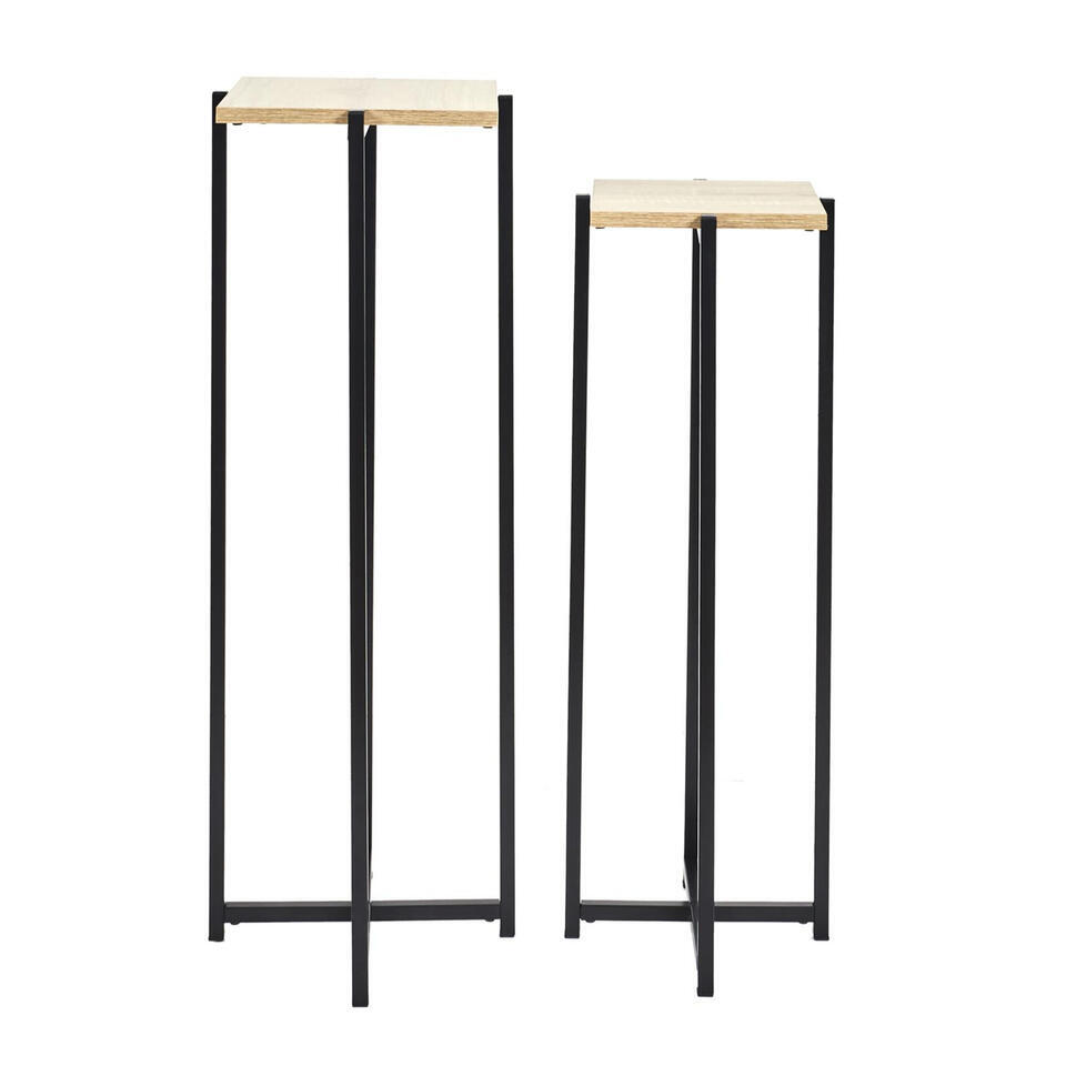 Home Deco Factory Table d'appoint - 2x pieces - noir - bois/metal - H82/H72 cm