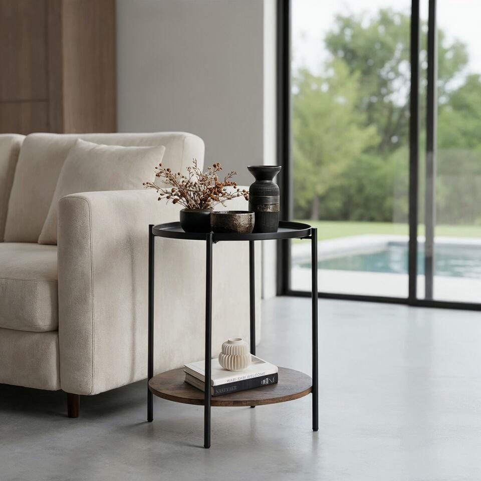 La table d'appoint Sunderland de tectake complète plusieurs styles d'aménagement. Vous avez assez de place pour poser sur le plateau des apéritifs, des boissons, ainsi que la télécommande. La combinaison sobre entre le bois et l'acier se présente dans un style typiquement industriel et s'intègre parfaitement dans la plupart des pièces grâce à son apparence discrète. La plaque supérieure dotée d'un bord surélevé peut être retirée et utilisée en tant que plateau. Cette table dispose d'une excellente stabilité grâce à ses pieds réglables en hauteur. Elle supporte également des objets lourds.