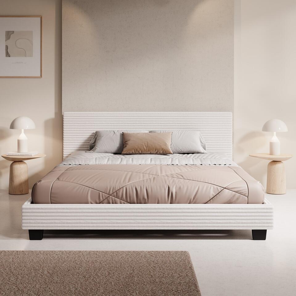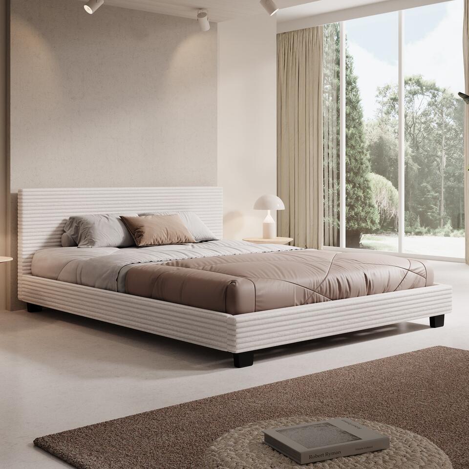 Meubella - Tweepersoonsbed George - Beige ribstof - 160x200 cm