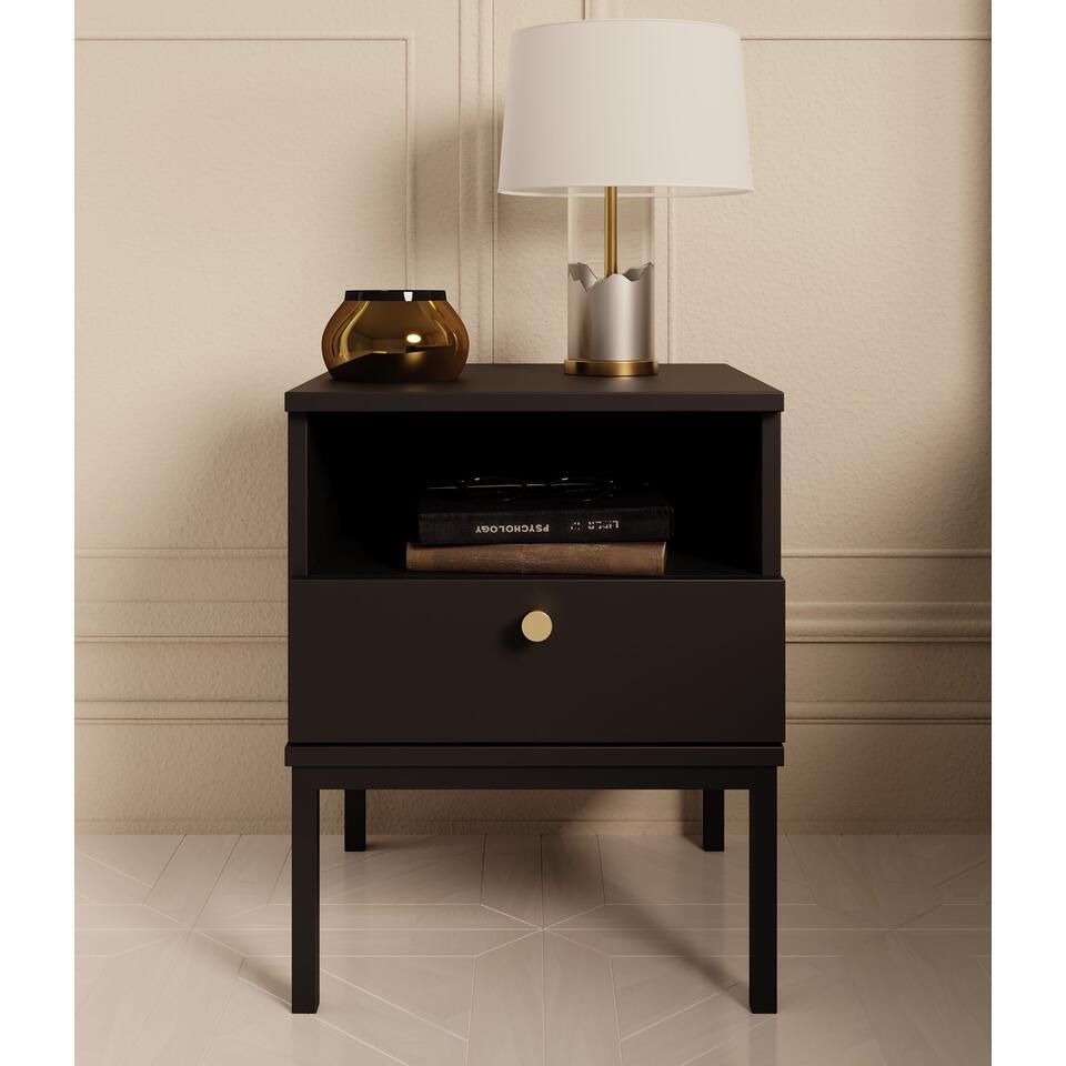 Meubella - Nachtkastje Lagos - Zwart - 40 cm