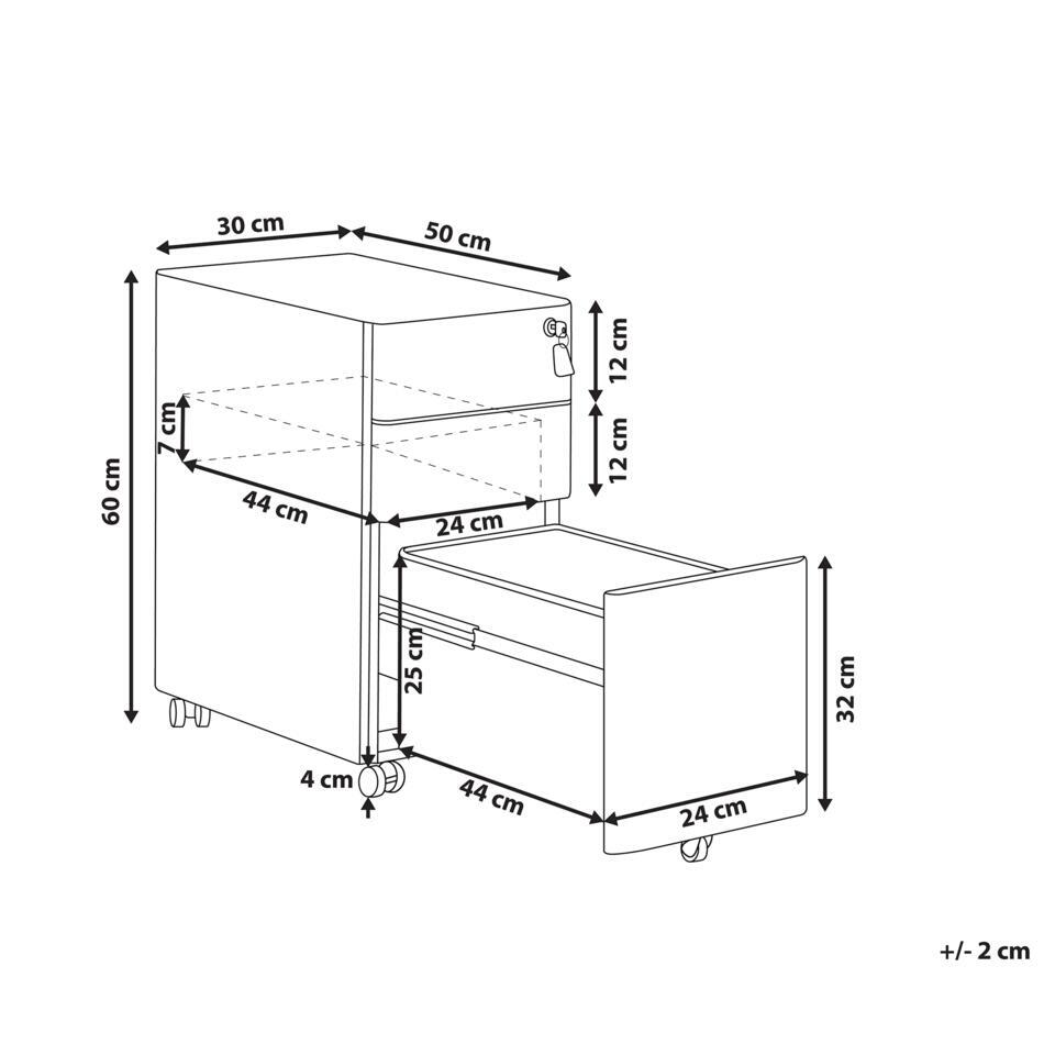 Metalen archiefkast. Deze metalen kast is een perfecte oplossing voor het ordenen van documenten en kantoorbenodigdheden. Drie planken bieden veel opbergruimte, terwijl een praktisch slotkastje je waardevolle spullen veilig bewaart. Het meubel is gemaakt van robuust metaal, staat stabiel en heeft minimaal onderhoud nodig om jarenlang mee te gaan. De kast is voorzien van ingebouwde wieltjes, waardoor hij gemakkelijk van de ene plaats naar de andere kan worden verplaatst. Dankzij het minimalistische ontwerp past deze opbergkast goed bij elke interieurstijl.