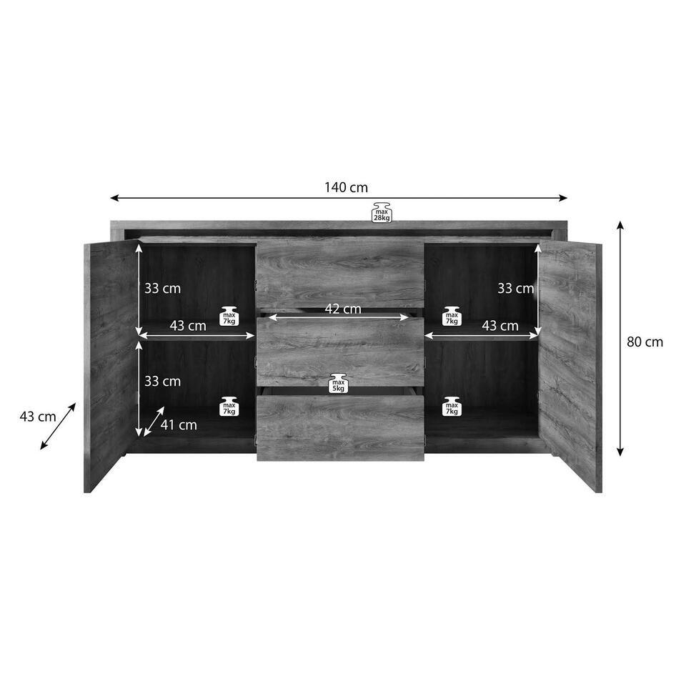 Meubella - Dressoir Monaco - Eiken - Grijs - 140 cm