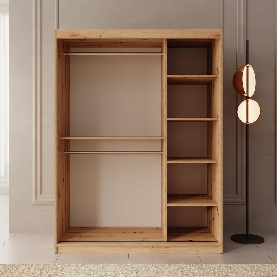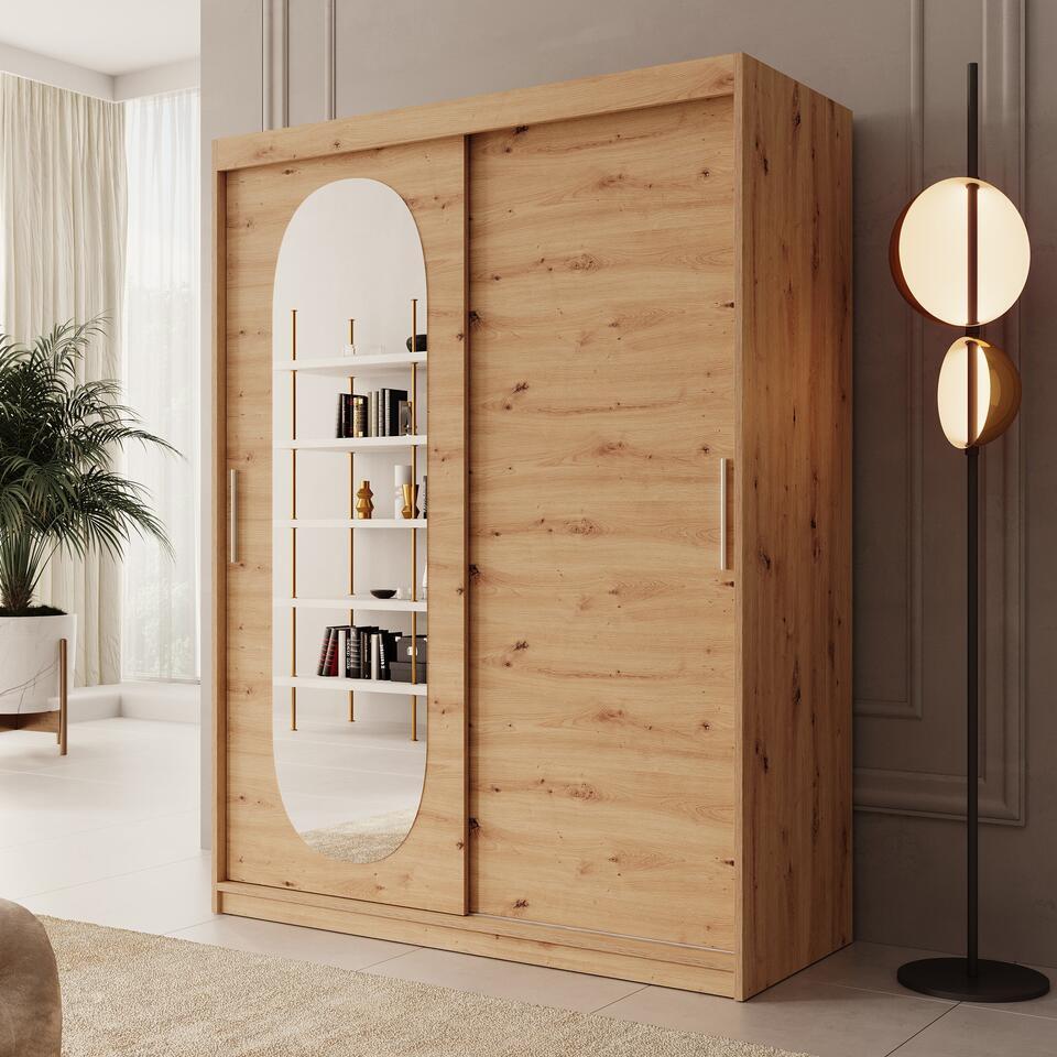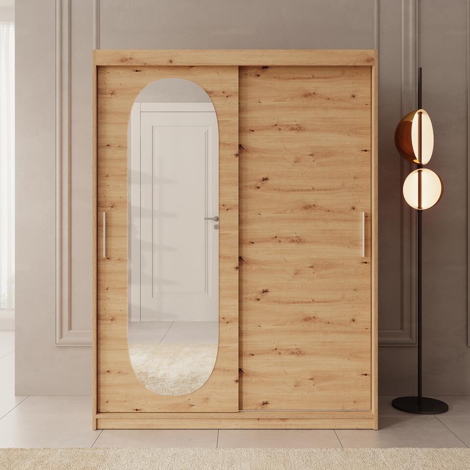 Meubella - Kleerkast Bodhi - Eiken - 150 cm - Met spiegel