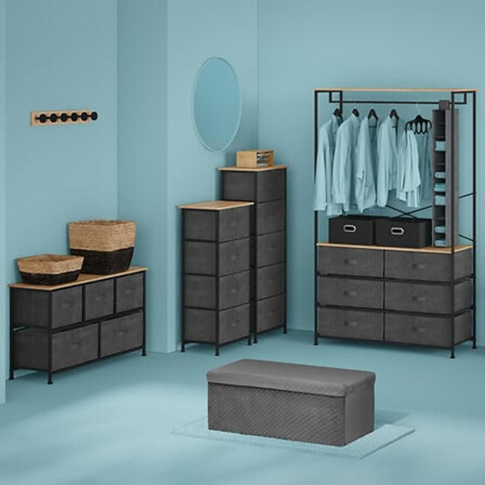 5Five Opbergkast - 3x mand - 43x30x73cm - hout/stof donkergrijs