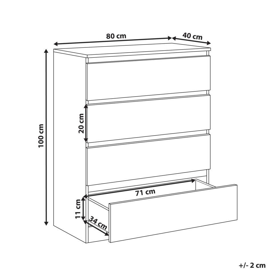 Scandinavische stijl dressoir kast met lades. Voeg tijdloze eenvoud toe aan je interieur met deze ladekast. Hij is gemaakt van duurzame, onderhoudsarme materialen en kan zonder moeite dagelijks gebruik aan. De Scandinavische minimalistische stijl biedt een strakke, moderne look die in elk interieur past. Met vier ruime lades biedt hij voldoende opbergruimte voor kleding, accessoires of huishoudelijke benodigdheden, zodat je je ruimte georganiseerd en rommelvrij kunt houden, terwijl hij er toch strak en stijlvol uitziet.