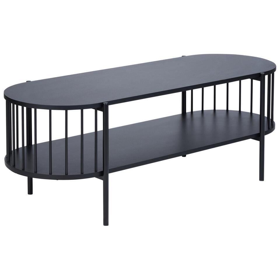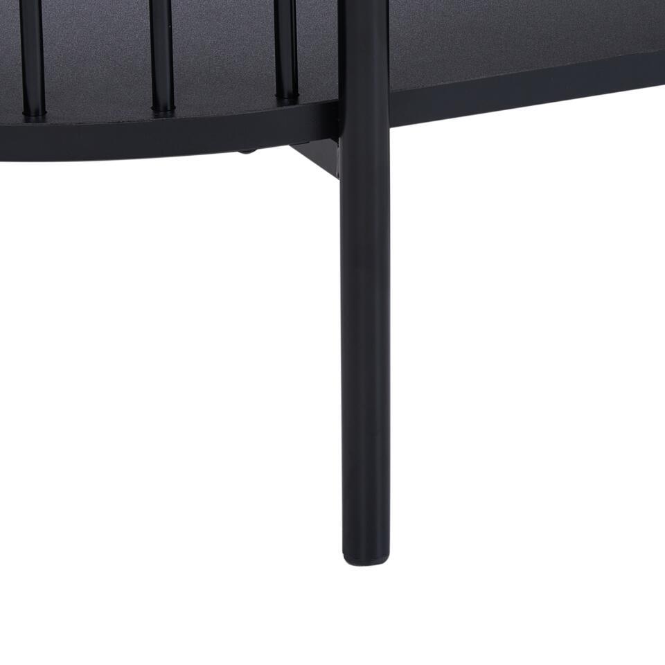 Lage tv-kast. Deze lage tafel is een ideale plek voor je media-apparatuur. De slanke, zwarte verticale panelen geven het een modern tintje, terwijl de ruime plank eronder de perfecte plek biedt voor het opbergen van een gameconsole en andere accessoires. Met dit TV-meubel houdt je de ruimte georganiseerd en stijlvol.
