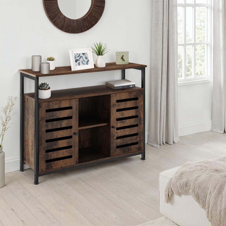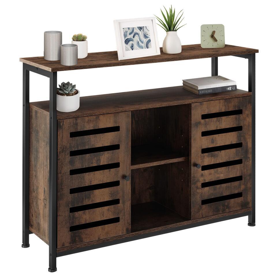 tectake Wandkast Warrington 100x37x82cm, Industrieel Hout Donker, Rustiek