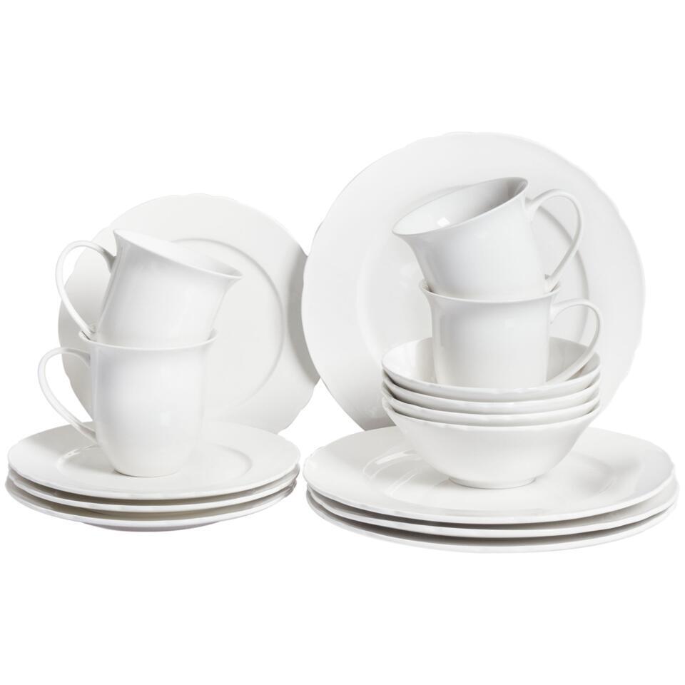 Handgemaakte servies set voor 4 personen. Deze 16-delige serviesset voor 4 personen combineert tijdloze elegantie met functionaliteit. Het is gemaakt van duurzaam porselein met een glanzend witte afwerking en bevat dinerborden, bijgerechtborden, kommen en mokken. Het minimalistische en klassieke ontwerp past bij elke tafel, waardoor het perfect is voor dagelijkse maaltijden en speciale gelegenheden. Deze set is geschikt voor de magnetron en de vaatwasser en biedt gemak en stijl, zodat functionaliteit en elegantie perfect samengaan.