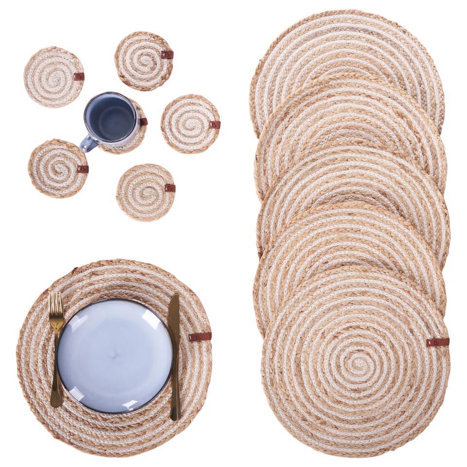 QUININE - Set van 12 placemats en onderzetters - Natuurlijk - Jute