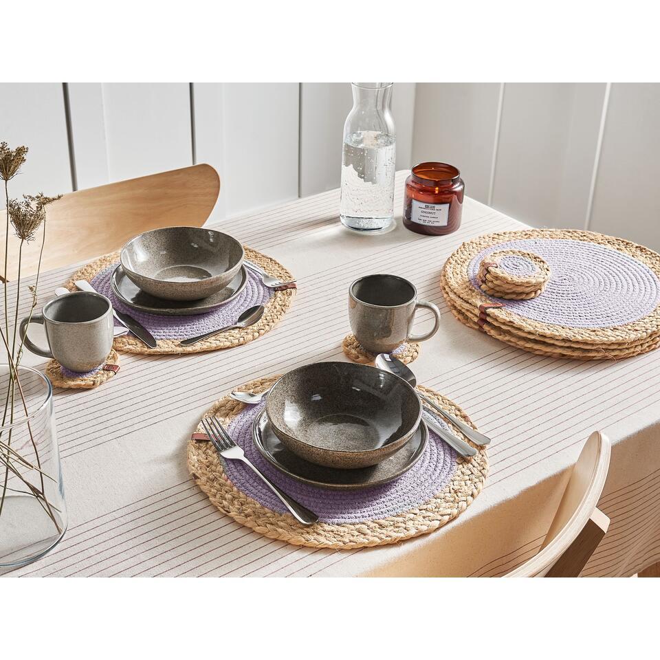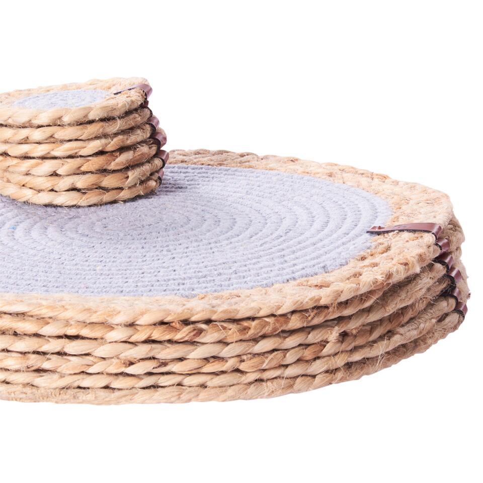 ROSELLA - Set 12 placemats en onderzetters - Grijs/Natuurlijk - Jute
