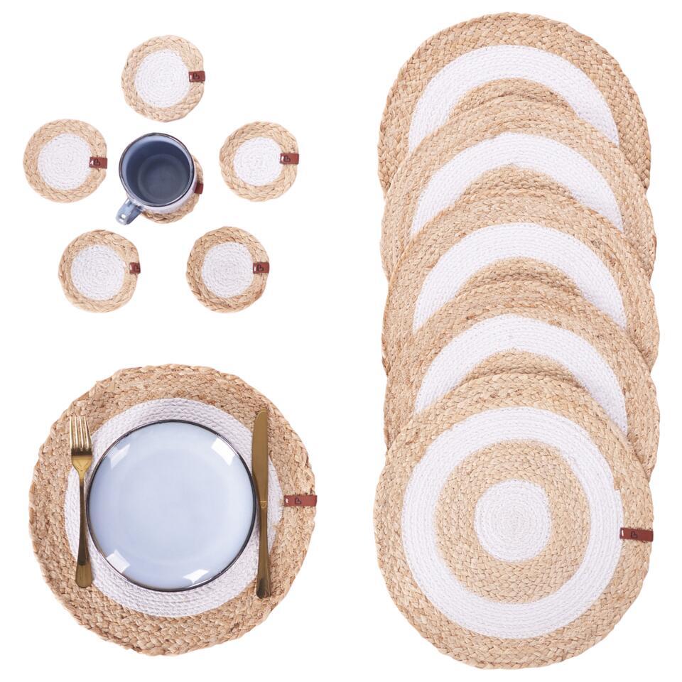 TUMERIC - Set van 12 placemats en onderzetters - Natuurlijk - Jute