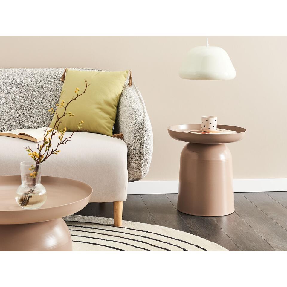 Accent tafeltje. Deze moderne metalen bijzettafel is het perfecte accent in de woonkamer en combineert stijl met functionaliteit. Het industriële karakter geeft het een modern tintje, terwijl de opstaande randen helpen om je telefoon, boek of kopje koffie veilig op zijn plaats te houden. De tafel is compact en opvallend en past netjes naast een bank of fauteuil.