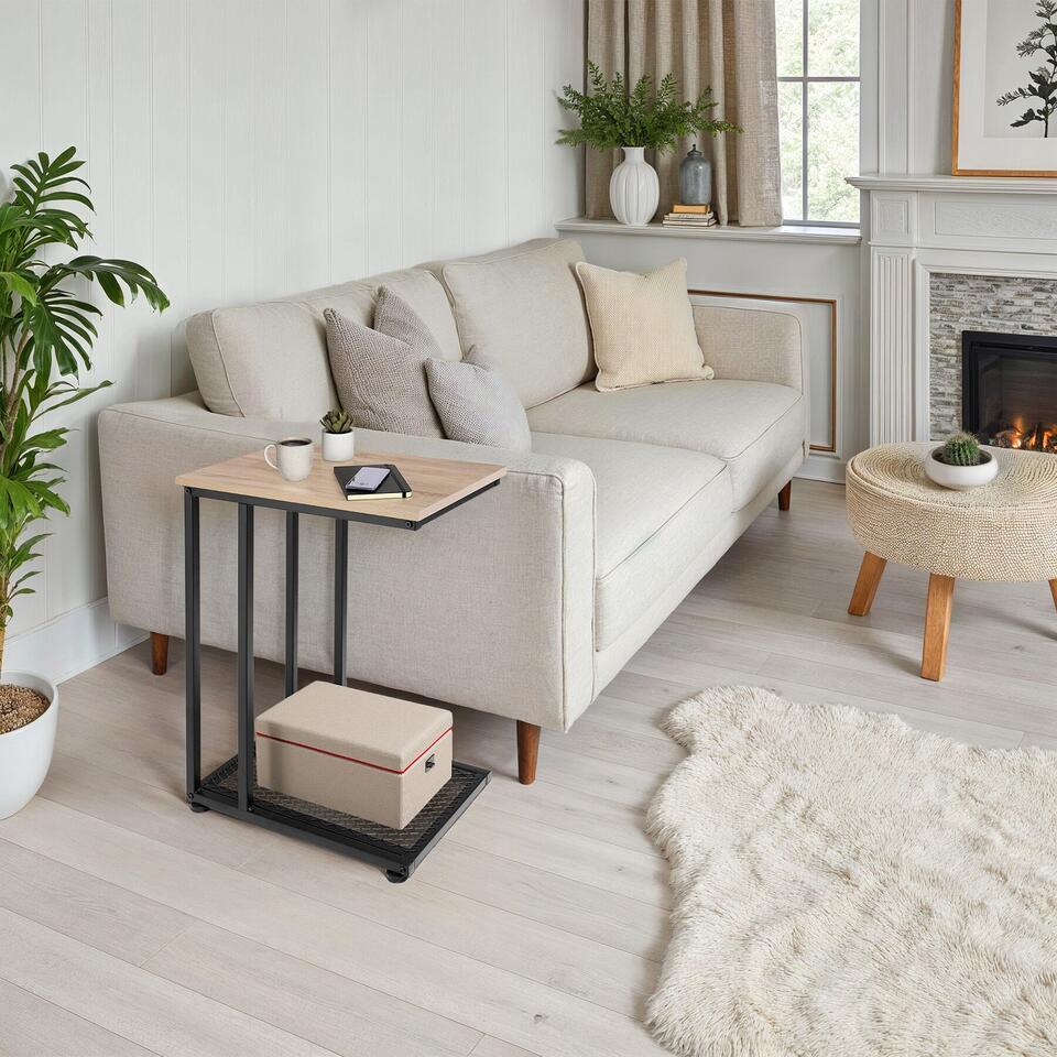 tectake Bijzettafel Eton 48x35x66cm, Industrieel Licht Hout, Eiken Sonoma