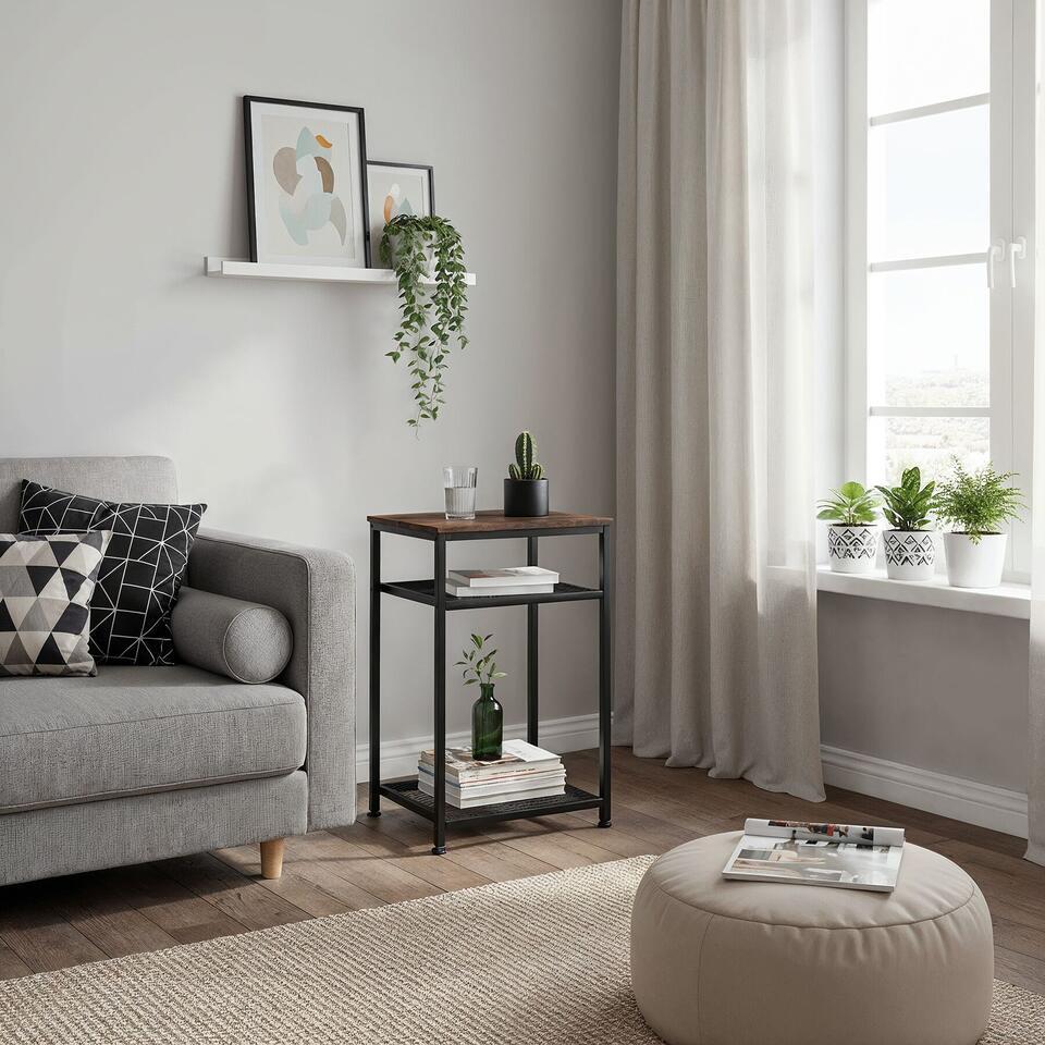 tectake Bijzettafel York 45,5x36x75,5cm, Industrieel Hout Donker, Rustiek