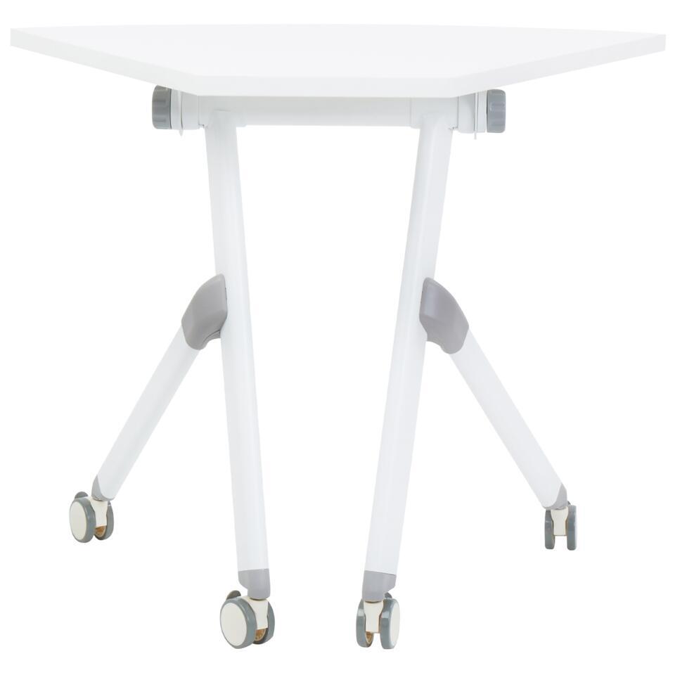 Mobiel inklapbaar bureau met metalen frame. Ontdek de perfecte mix van functionaliteit en mobiliteit en geef je kantoorruimte een boost met dit inklapbare bureau. Met een handig inklapbaar tafelblad kan dit bureau moeiteloos worden opgeborgen als het niet wordt gebruikt, waardoor het ideaal is voor compacte ruimtes. Het bureau is uitgerust met vergrendelbare wielen en biedt stabiliteit en veelzijdigheid, zodat je het gemakkelijk kunt verplaatsen en vastzetten als dat nodig is. Dit bureau is ideaal voor thuiskantoren en andere werkruimtes en zorgt voor een praktische en stijlvolle werkplekoplossing.