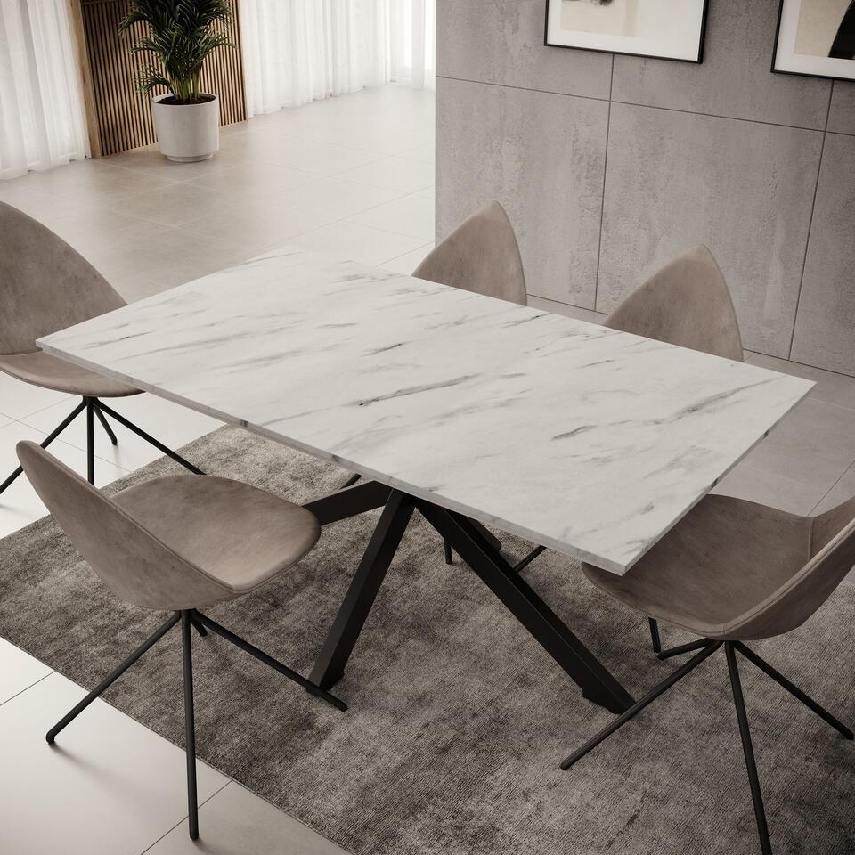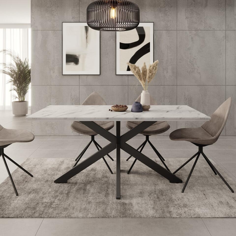 Meubella - Eetkamertafel Wabe - Wit marmerlook - 160 cm