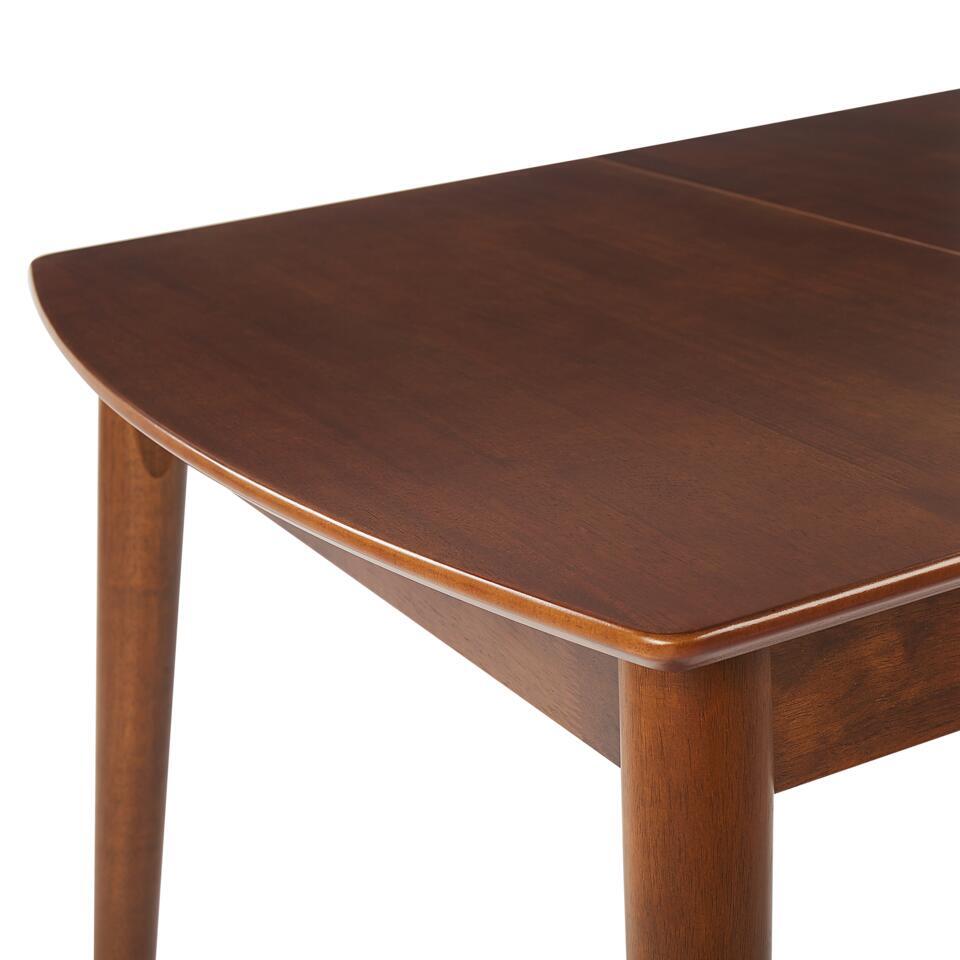 Retro-geïnspireerde houten eettafel. Met deze elegante tafel maak je de inrichting van je eetkamer compleet. Het meubel is voorzien van een uitschuifbaar blad dat geschikt is voor maximaal 4 personen, zodat je comfortabel kunt genieten van maaltijden in het gezelschap van vrienden en familie. Door het houtknoopeffect en de retrolook van de tafel past deze goed in vele woonstijlen.