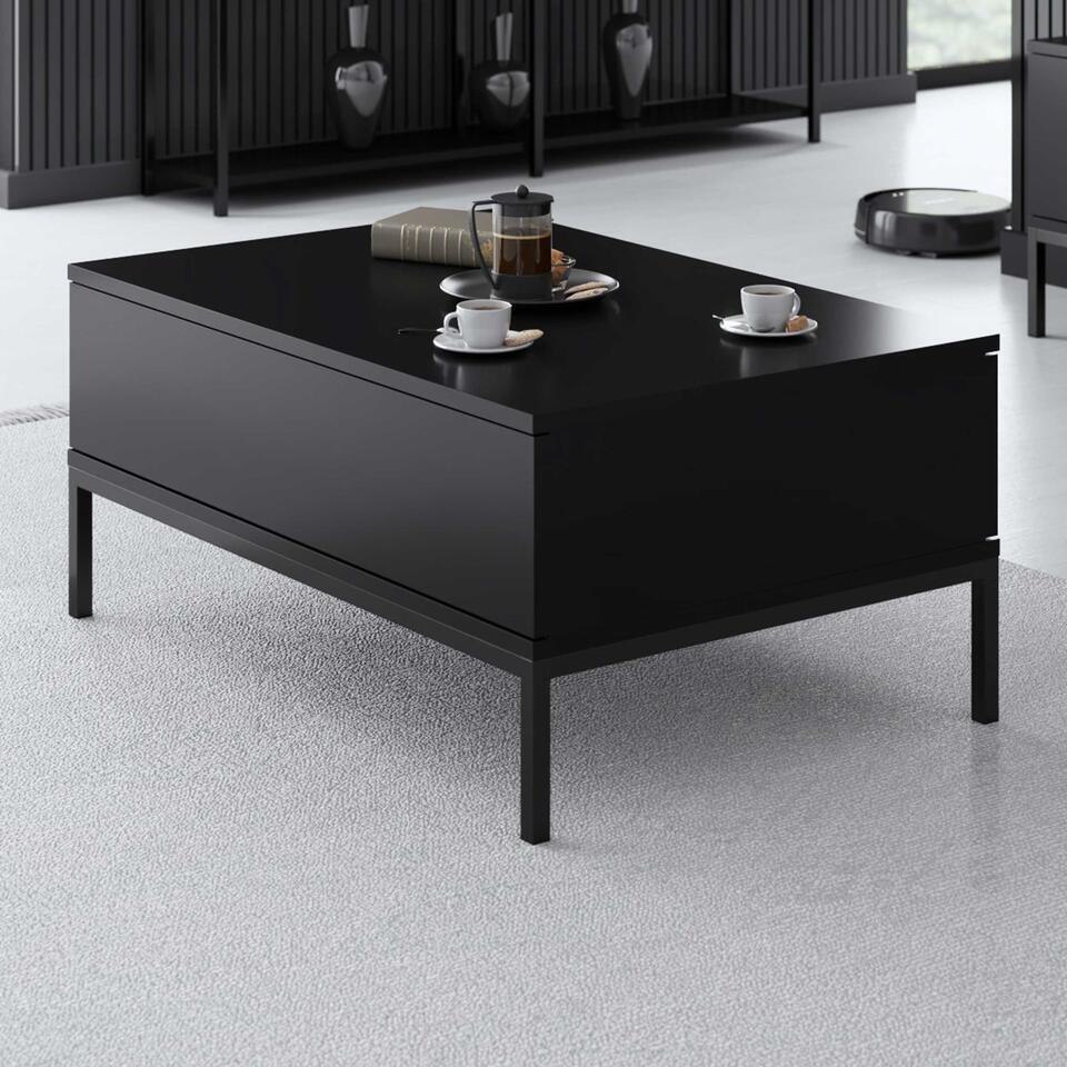De strakke zwarte kleur van deze salontafel voegt een vleugje verfijning toe aan elke kamer. De strakke lijnen en minimalistische esthetiek maken het een tijdloos stuk dat nooit uit de mode zal raken. Of je nu een moderne, eigentijdse of traditionele inrichting hebt, deze tafel past moeiteloos in elke omgeving.