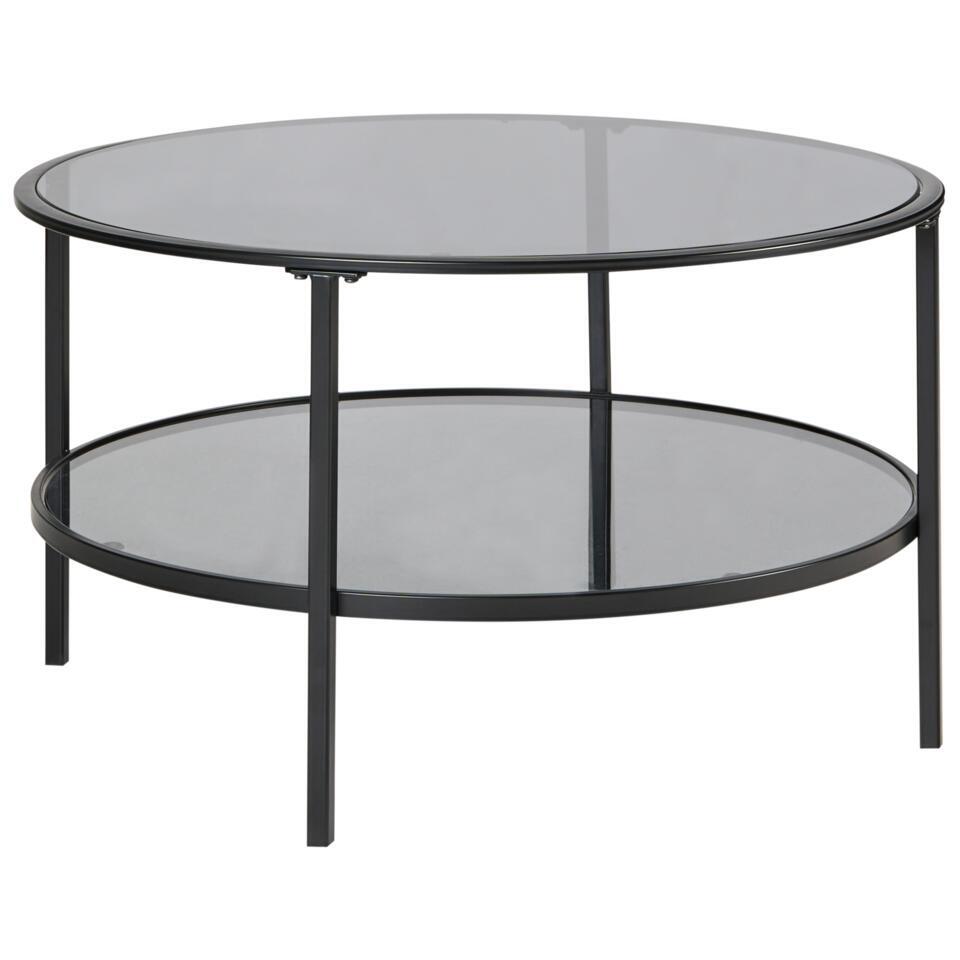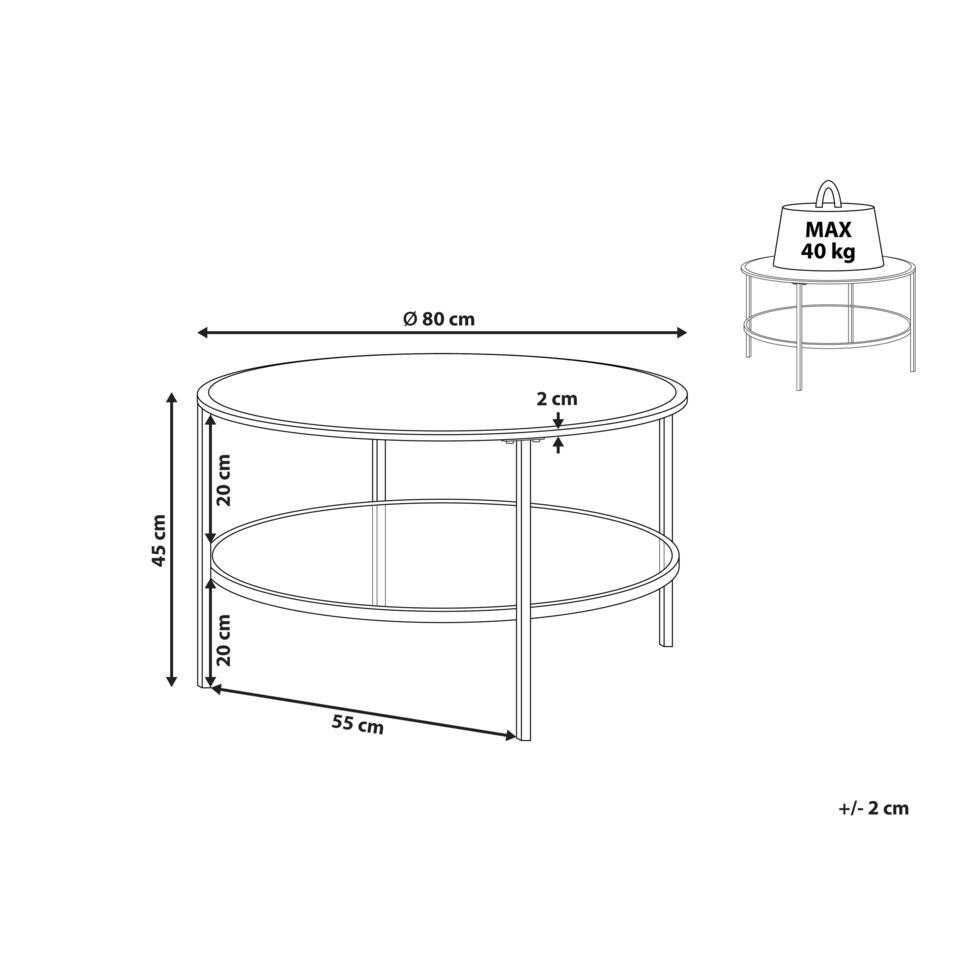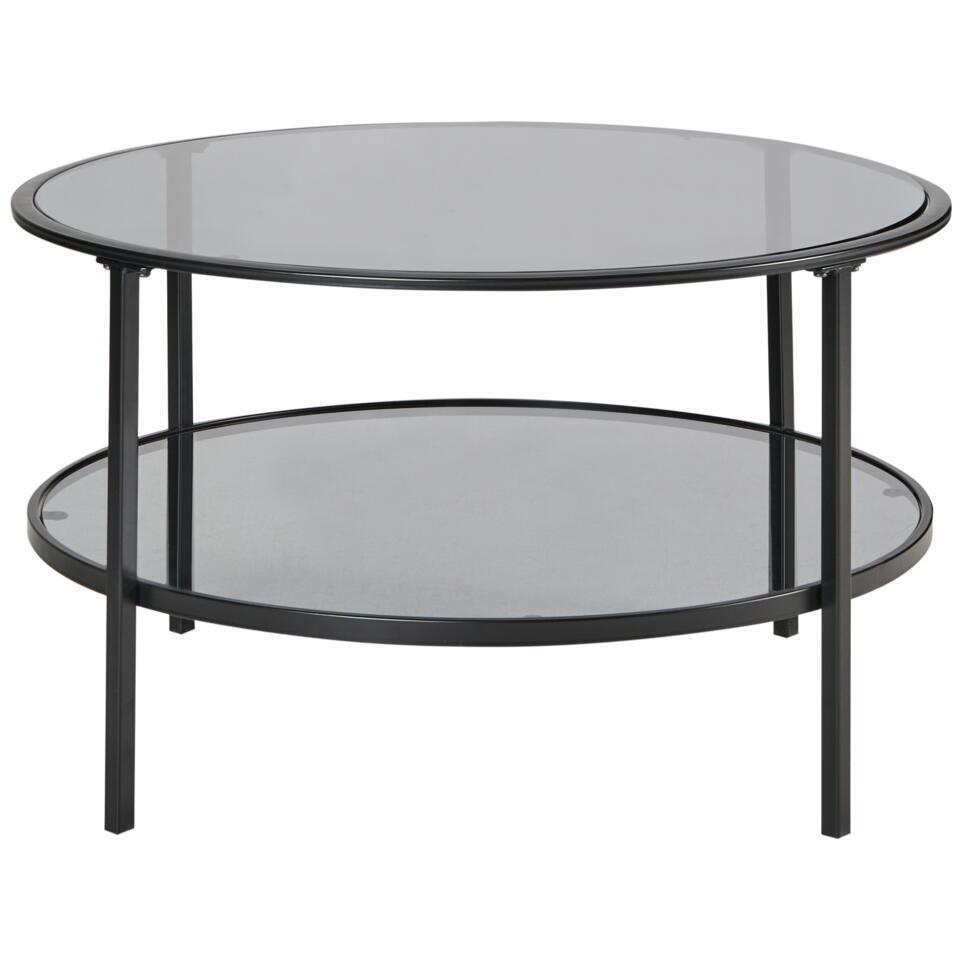 Ronde tafel met glazen tafelblad en plank. Deze ronde salontafel combineert een tijdloos ontwerp met een moderne twist, met een tafelblad van gehard glas voor duurzaamheid en stijl, en een stevig metalen frame voor een langdurig effect. De praktische plank eronder biedt extra ruimte, waardoor hij perfect is voor het opbergen of uitstallen van je benodigdheden. De veelzijdige stijl past perfect bij zowel moderne als traditionele interieurs.