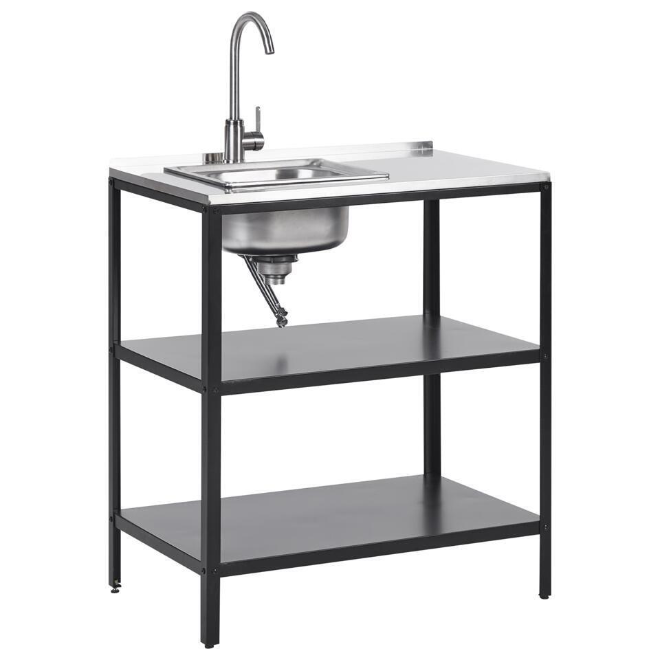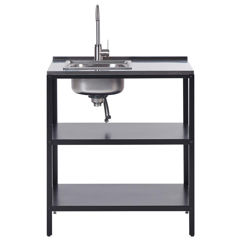 VILAMA - Tuin kookeiland met spoelbak - Zwart - 3-delig - RVS