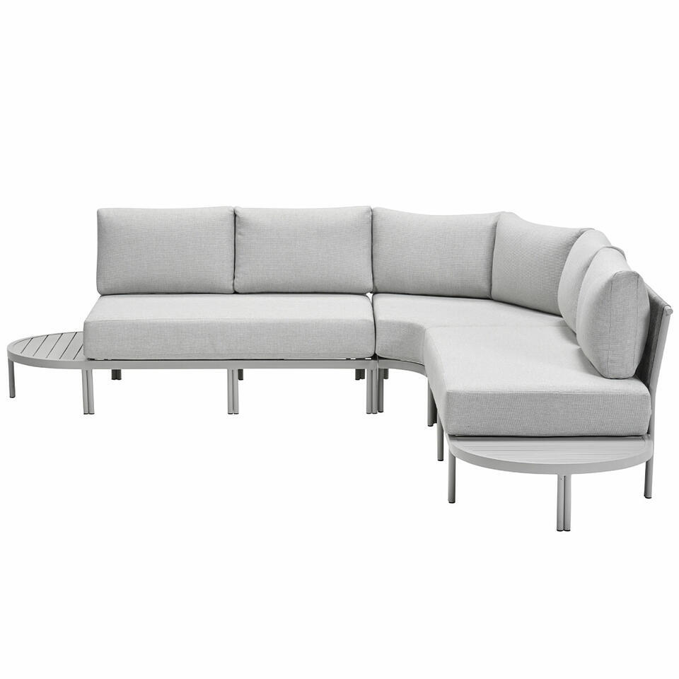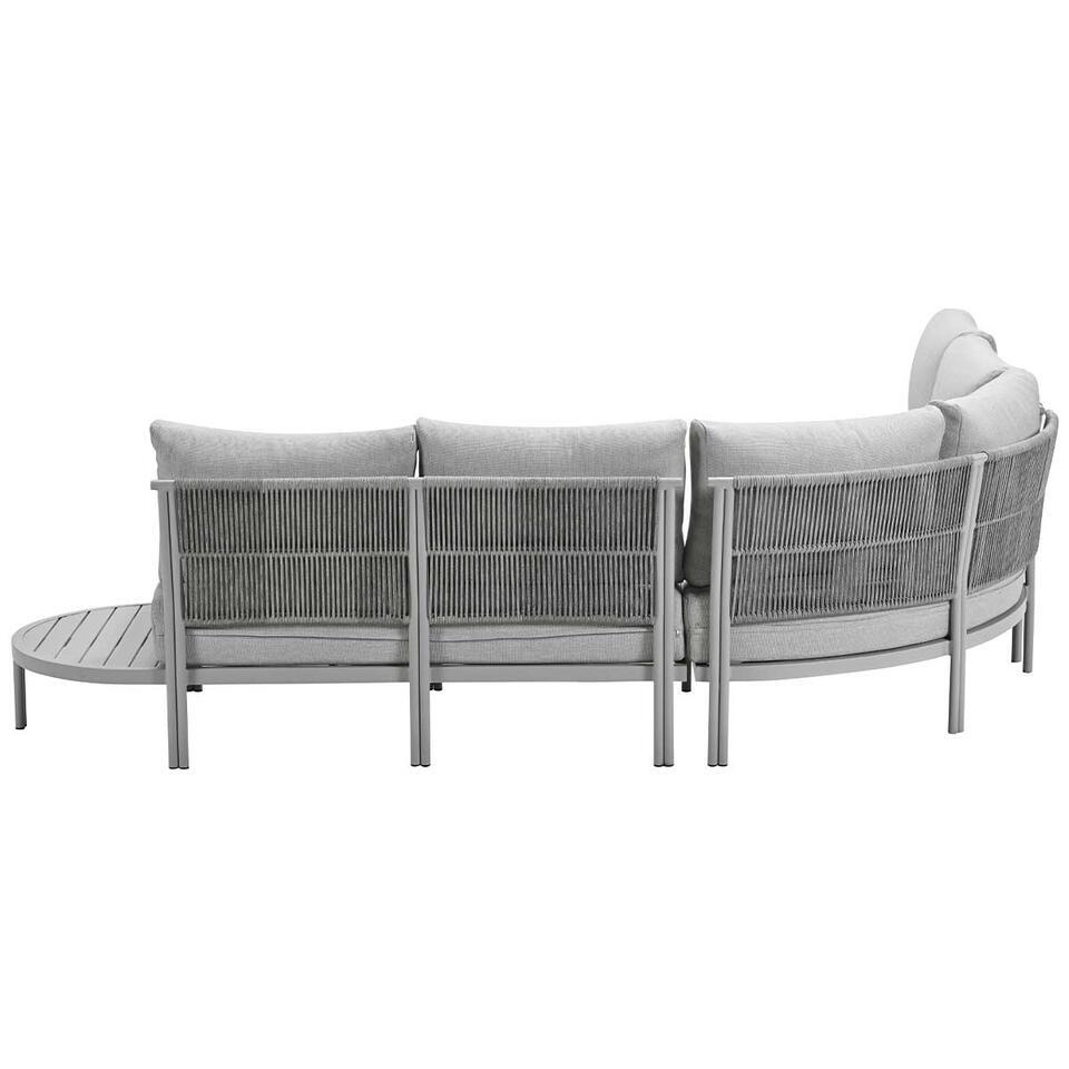 Het voordeel van aluminium is dat het een zeer onderhoudsvriendelijk materiaal is. Daarnaast is aluminium vrij licht en kan de loungeset gemakkelijk verplaatst worden naar een andere plek in de tuin. De rugleuningen zijn gemaakt van zand kleurig rope. Dit touw is te vergelijken met touw dat in de scheepsvaart gebruikt wordt. Het touw is voorzien van een rubberen kern binnenin met daarin meerdere polyester draden voor de stevigheid. Om de rubberen kern zit solution dyed polyester rope. Dit betekent dat het touw door en door gekleurd is en verkleurt veel minder snel.
