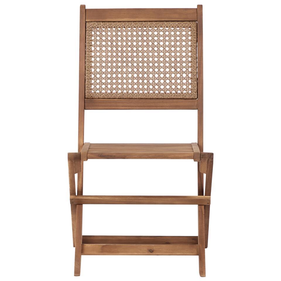 Inklapbare stoelen en tafel set voor op het balkon. Maak van je balkon een gezellige plek met onze inklapbare acaciahouten balkonset. Deze compacte en stijlvolle set bestaat uit twee stoelen versierd met elegant Weens vlechtwerk op de rugleuningen en een bijpassende tafel. De set is ontworpen om ruimte te besparen en kan eenvoudig worden opgeborgen. Ideaal om 's ochtends koffie te drinken of 's avonds te ontspannen. Deze duurzame set geeft elke kleine buitenruimte een tijdloze charme.