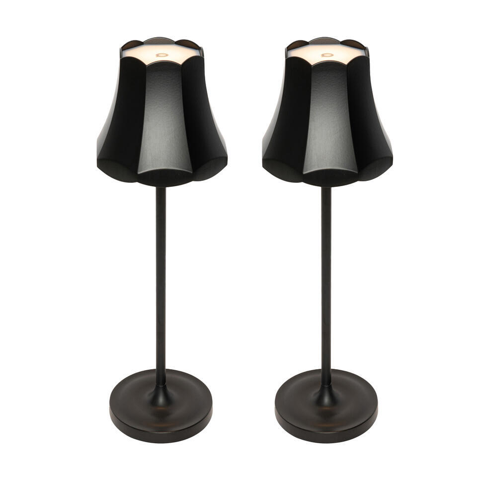 Ben je op zoek naar een stijlvolle en functionele toevoeging aan je interieur of tuin? Ontdek de Granny Retro set van 2 tafellampen in elegante zwarte afwerking! Deze lampen passen perfect bij een moderne of minimalistische stijl en zijn gemaakt van aluminium. Ze zijn echte blikvangers in elke ruimte. Met een IP44-rating zijn deze lampen spatwaterdicht en kunnen ze tegen een regenbui, waardoor ze ideaal zijn voor zowel binnen als buiten. Elke lamp is 36 cm hoog en heeft een diameter van 11,6 cm. Ze hebben een lichtopbrengst van 130 lumen en een warme kleurtemperatuur van 2700 kelvin, wat zorgt voor een gezellige sfeer. Dankzij de touchdimmer op de bovenkant van elke lamp kun je eenvoudig de lichtsterkte aanpassen. De lampen zijn gemakkelijk op te laden met de meegeleverde USB-C kabel en gaan na opladen 12 uur mee. Geef je interieur of tuin een stijlvolle upgrade met deze prachtige en praktische set van twee tafellampen. Wacht niet langer en ervaar de elegantie en charme van de zwarte Granny Retro lampen!