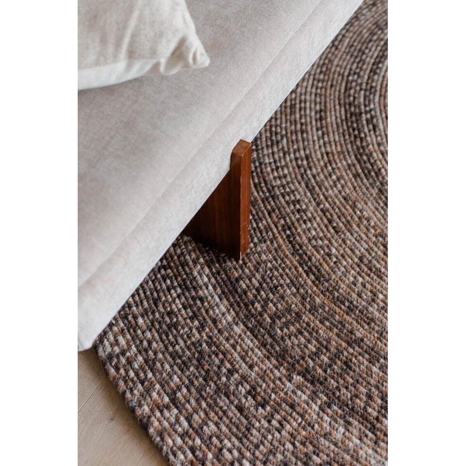 Het ronde wollen vloerkleed Gapo is verkrijgbaar is 6 kleuren Dankzij de bijzondere kleur die in het tapijt is verwerkt, past het vloerkleed bij diverse interieur stijlen. Naast de veelzijdigheid in kleur en stijl, is het karpet letterlijk veelzijdig: het kleed kan aan beide zijden gebruikt worden. Het vloerkleed heeft namelijk geen backing. En een wollen kleed zorgt natuurlijk voor een warme, knusse en zachte uitstraling in je woon- of slaapkamer maar ook in je kantoor. Daarnaast voelt het kleed heerlijk aan je voeten! Dit wollen tapijt is verkrijgbaar in vier kleuren en vier verschillende maten: 150ø,180ø, 220ø en 250ø. Voor iedereen zit er wel een passend formaat tussen.