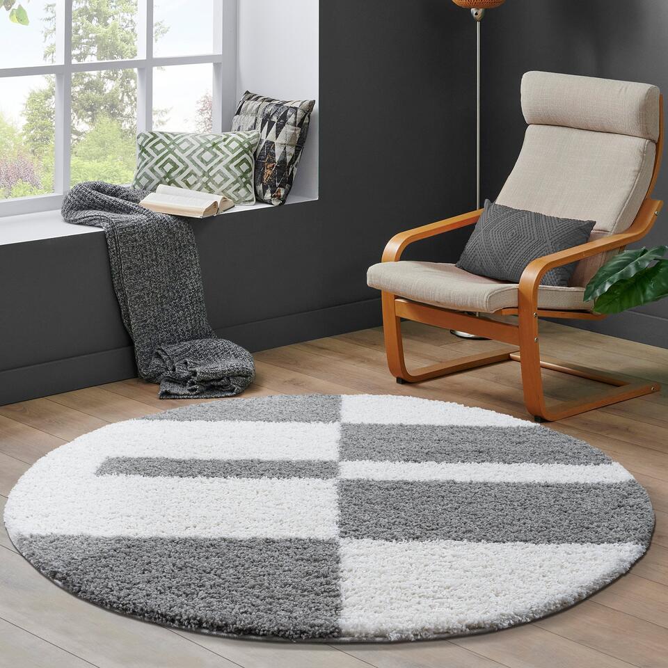 Milano Gala Hoogpolig Rond Vloerkleed Modern Lichtgrijs Creme - 150 CM ROND