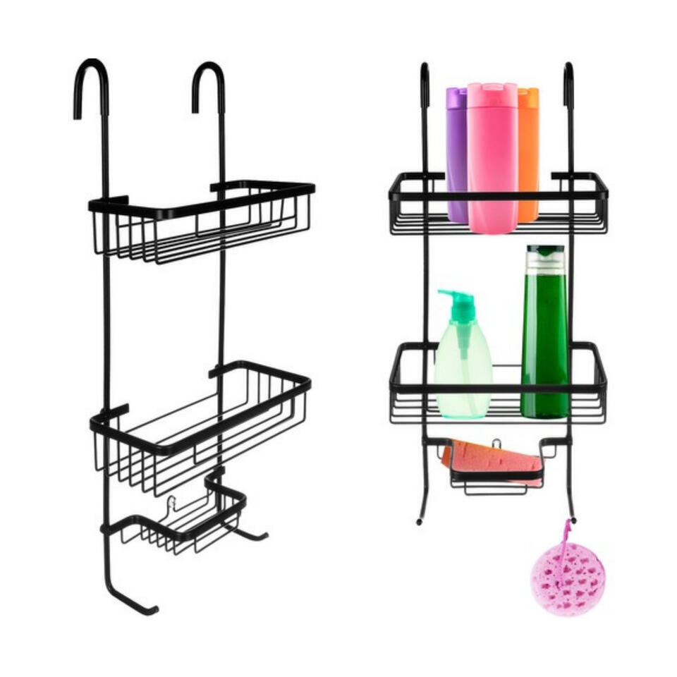 Ruhhy Badkamer douche rekje - zwart - 63 x 24 x 11 cm - aluminium