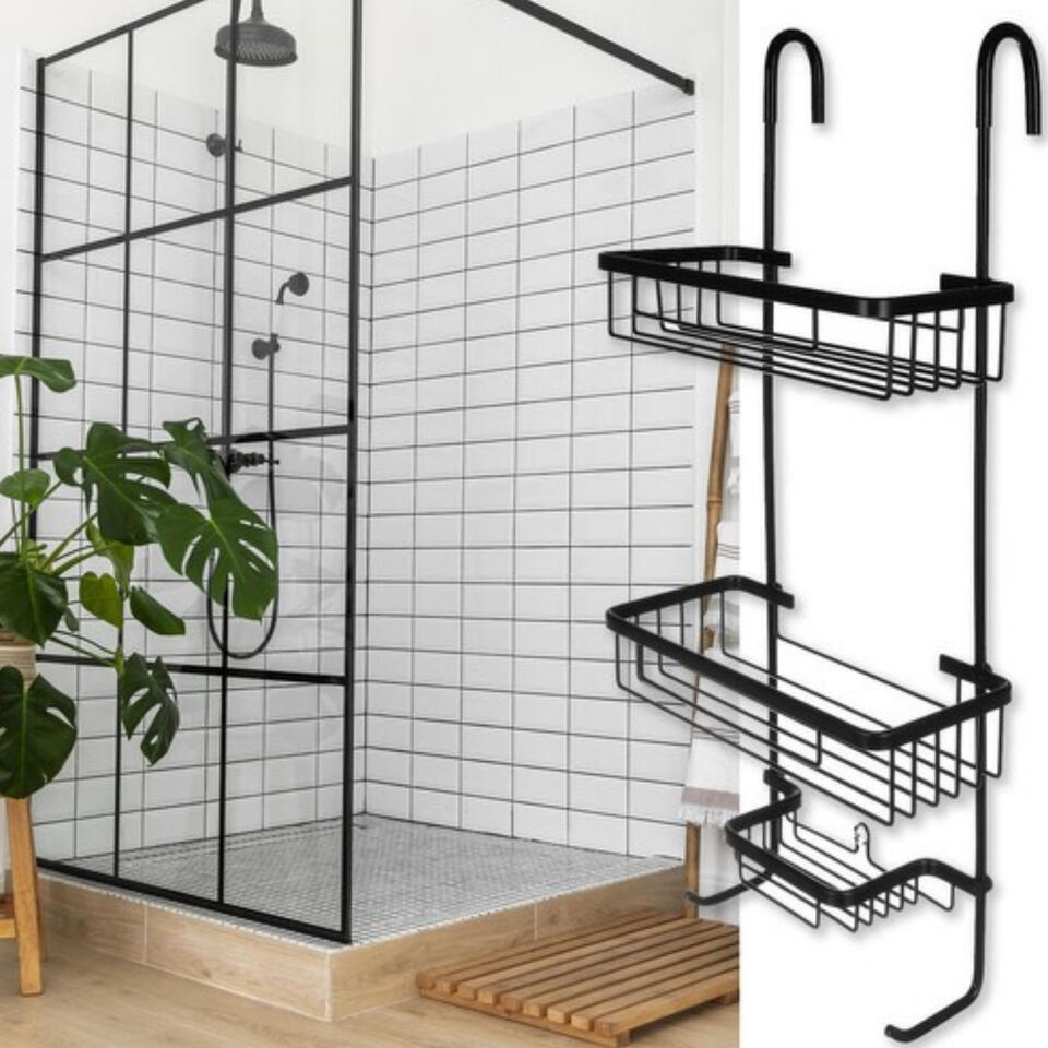 Badkamer doucherekje van Ruhhy. Deze hangende doucheplank biedt volop ruimte voor shampoo, zeep en andere badkamerbenodigdheden, verdeeld over drie ruime planken. Gemaakt van roestvrij aluminium met een zwarte coating, combineert hij een moderne uitstraling met lange levensduur. Dankzij de eenvoudige installatie zonder boren, hang je de plank snel aan de douchecabine, ondersteund door zuignappen voor extra stabiliteit. Zo houd je je badkamer netjes en georganiseerd zonder gedoe.