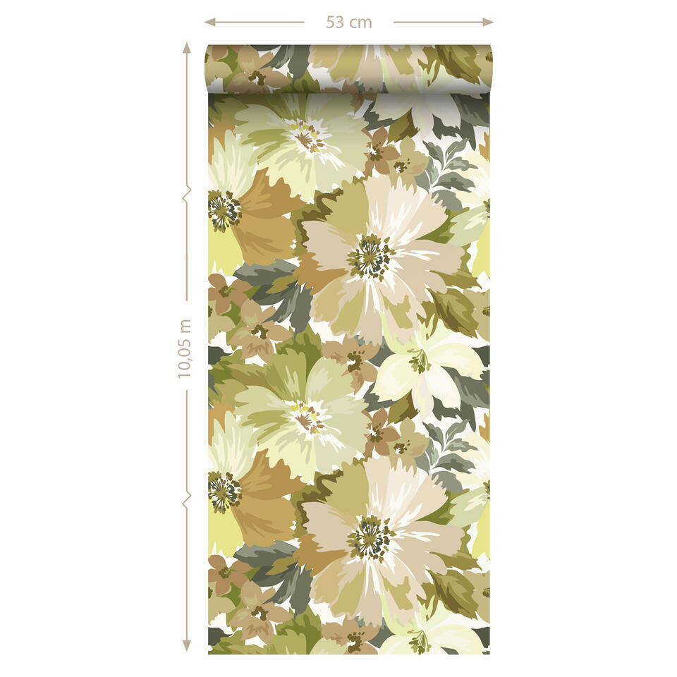 ESTAhome behangpapier - bloemen - olijfgroen - 50 x 900 cm - 131262