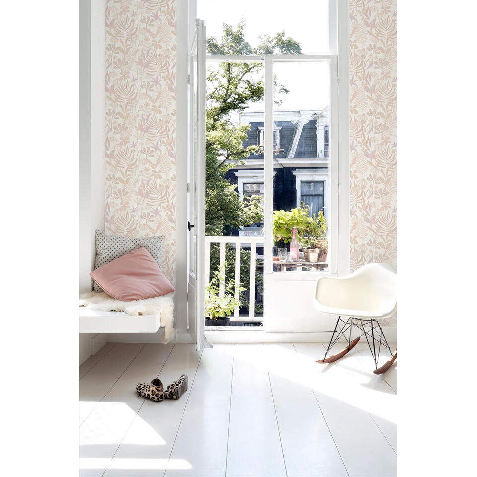 Wil je de look compleet maken? Combineer dit behangpapier dan met lichte kleuren, natuurlijke materialen en niet te vergeten: heel veel planten.