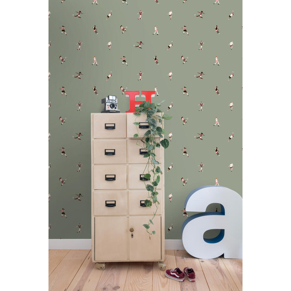 ESTAhome behangpapier - voetbalspeelsters - vergrijsd groen - 50 x 900 cm