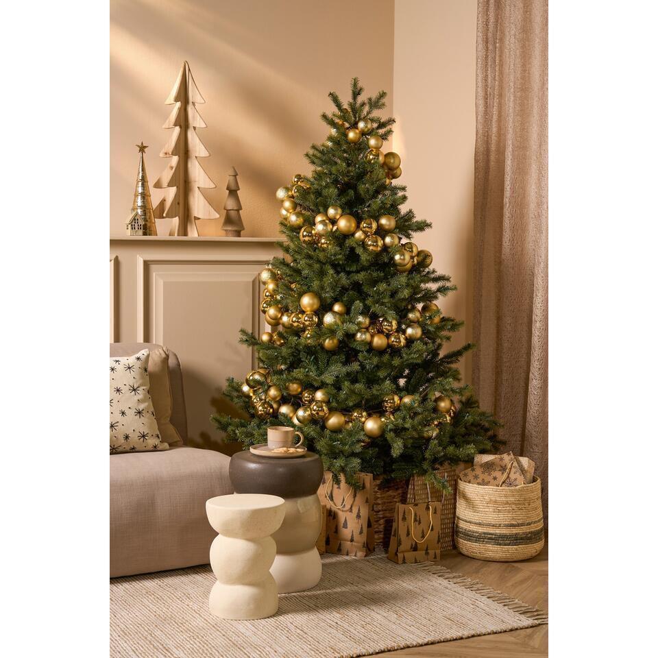 De Clive kunstkerstboom van Black Box Trees biedt het beste van twee werelden - het gemak van een kunstboom gecombineerd met een natuurlijke uitstraling. De boom is namelijk voorzien van stevige, bruine takjes met groene naaldjes. Deze zijn gemaakt van het meest realistische materiaal, namelijk PE, en voorgevormd in een mal naar voorbeeld van de natuur. De binnenste takken zijn voorzien van zachte PVC naaldjes die de boom mooi opvullen. Door de scharnierconstructie is de boom gemakkelijk op te zetten: de takken vallen automatisch op hun plaats. Alleen de takjes moeten nog mooi in vorm gebracht worden. Zo hou je extra veel tijd over om de kerstboom te versieren! De Clive kunstkerstboom is verkrijgbaar in verschillende afmetingen. Dit model is H155 x Ø109 cm en heeft 1342 takken. De kunstkerstboom voldoet aan de strengste wetgeving voor wat betreft brandveiligheid en de aanwezigheid van zware metalen. Daarnaast wordt de kunstkerstboom geleverd met 5 jaar garantie.