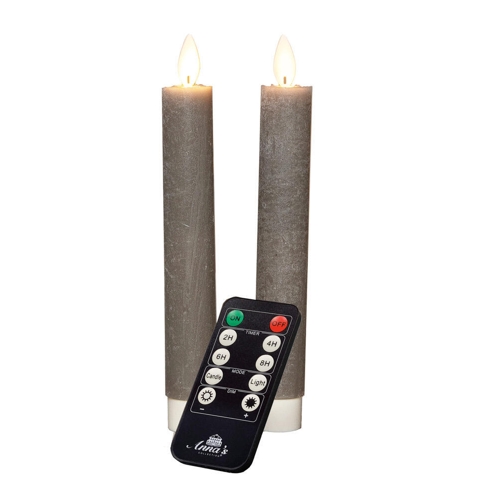 Anna's Collection LED dinerkaarsen - 2x st - taupe grijs - 18 cm