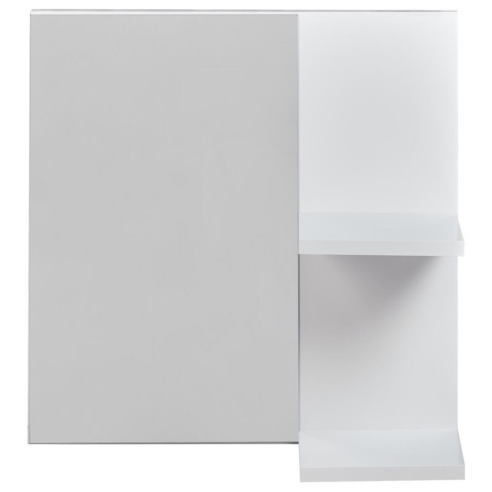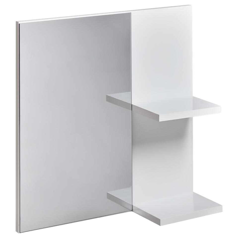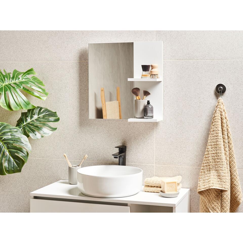 Badkamer wandspiegel met planken. Deze moderne badkamerspiegel combineert stijl en functionaliteit met zijn slimme 2-in-1 ontwerp. Met een spiegel aan de linkerkant en twee open planken aan de rechterkant houdt hij je benodigdheden netjes bij de hand en voegt hij een minimalistisch tintje toe aan je ruimte. De eenvoudige indeling maakt hem perfect voor dagelijks gebruik zonder het uiterlijk van je badkamer te overweldigen. Een slimme en subtiele manier om georganiseerd te blijven in stijl.