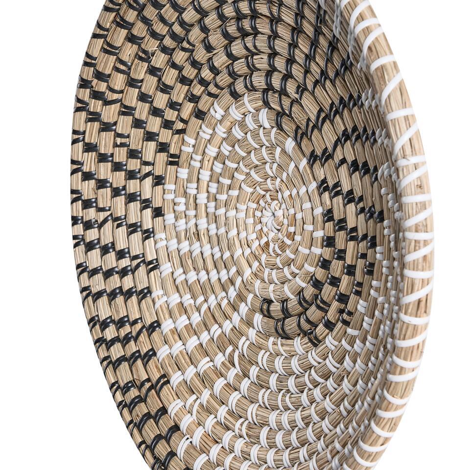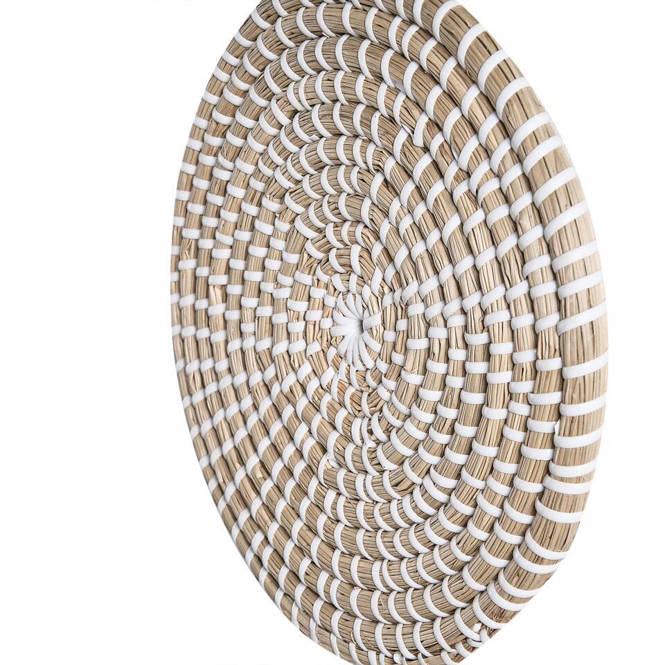 Geweven wanddecoratie. Voeg een unieke, rustieke flair toe aan je kamer en versier het met deze set wandaccessoires. De 3 platen zijn handgemaakt van zeegras en zijn niet alleen duurzaam, maar trekken ook de aandacht. Bovendien heeft elk bord een hanger aan de achterkant, waardoor ze gemakkelijk op te hangen zijn - samen of apart.
