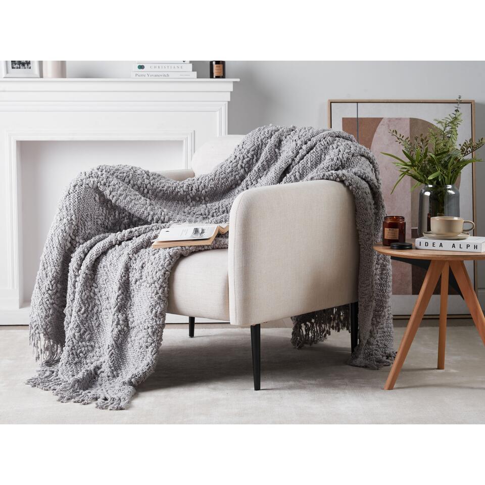 Geweven plaid met kwastjes. Deze deken van zacht katoen met acryl is een must-have voor elk knus interieur. De geweven, lusachtige textuur, gecombineerd met speelse kwastjes, geeft het een boho vibe. Of je nu lekker knus op de bank zit of een laagje warmte aan je bed toevoegt, deze deken houdt je het hele seizoen warm en comfortabel.