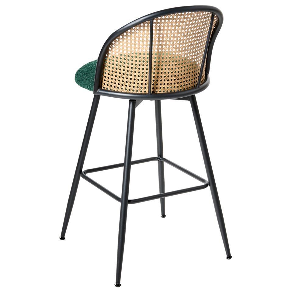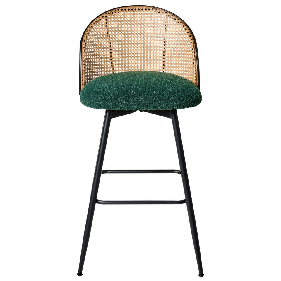 Draaibare barkrukken met Weens vlechtwerk. Breng tijdloze charme en dagelijks comfort in je ruimte met deze set van twee barkrukken, perfect om aan te eten of te ontspannen. Ze zijn stijlvol en praktisch en hebben duurzame, zachte bouclé zittingen, elegante rugleuningen van synthetisch rotan en een stevig metalen frame. De zitting kan 360° draaien, wat extra gemak biedt en deze stoelen tot een strakke en functionele aanvulling op elk interieur maakt.