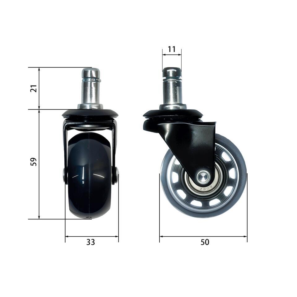 Let op: deze bureaustoel wieltjes passen niet onder elke bureaustoel van andere leveranciers. Wanneer je een wieltje wilt aanschaffen vergelijk deze dan goed met een huidig wieltje en meet het staafje op.