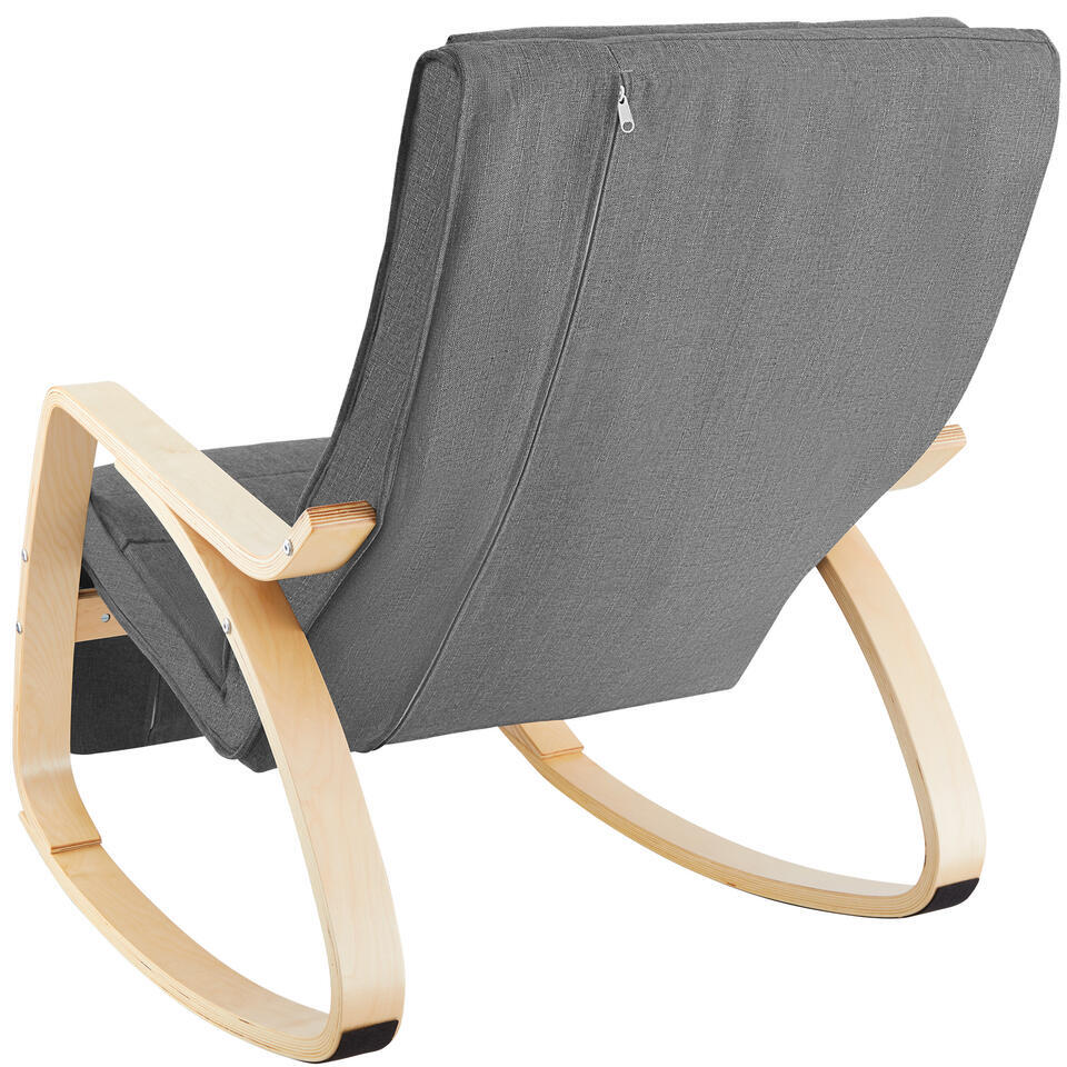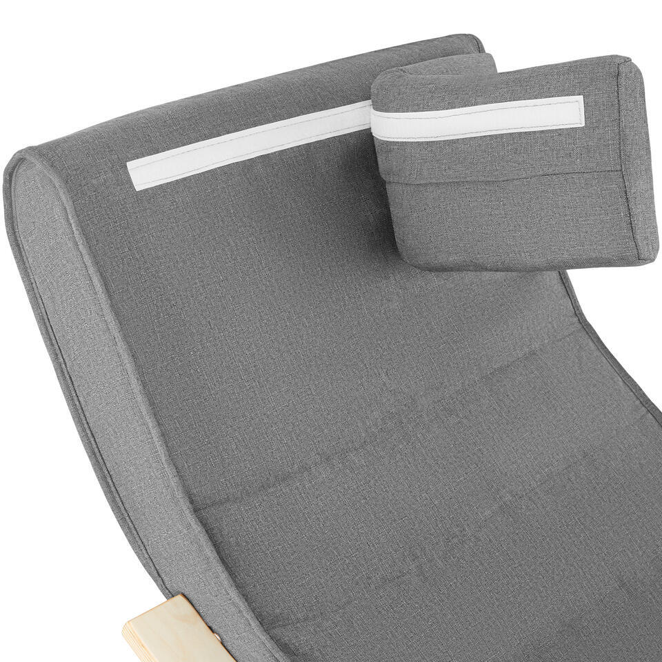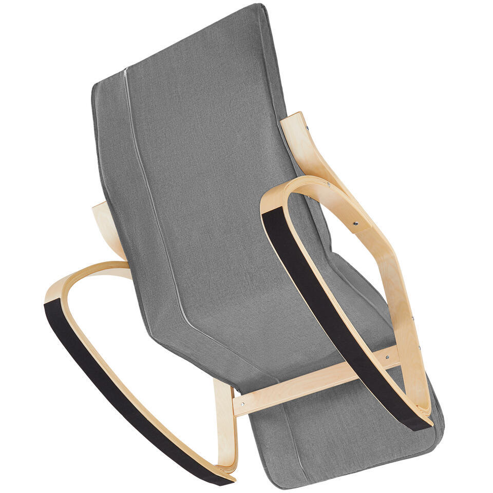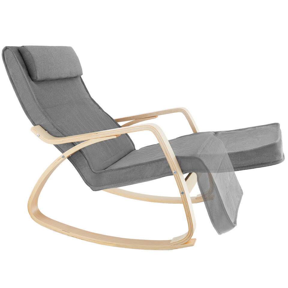 Deze uitnodigende schommelstoel van tectake is een geslaagde combinatie van chique design en grote gezelligheid. Met de 5-voudig verstelbare voetsteunen, het zachte kussen en de brede armleuningen vind je altijd de ideale positie voor maximale ontspanning. De zelfklevende vilten glijders onder de kuip voorkomen wegschuiven en voorkomen krassen in de vloer. Het verende frame van ergonomisch gevormd gelaagd hout en solide staal is heel stabiel en uiterst belastbaar - optimale omstandigheden voor optimaal zitcomfort.