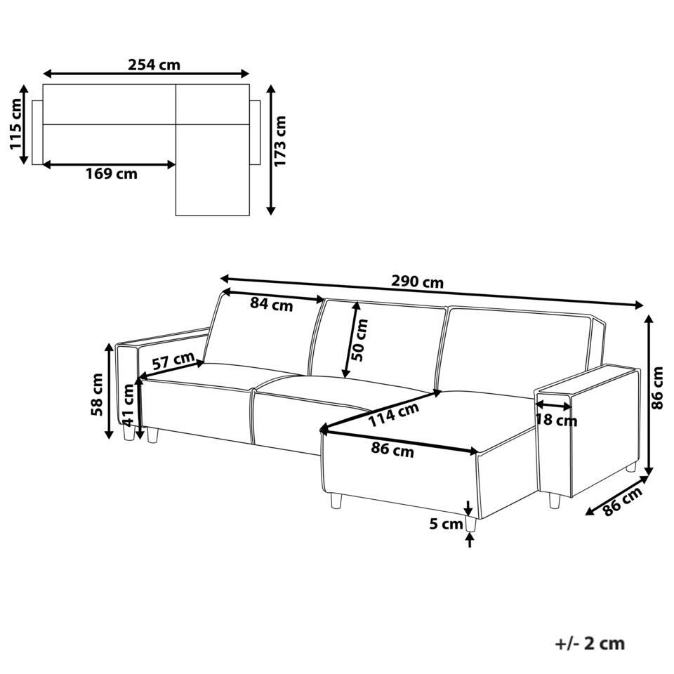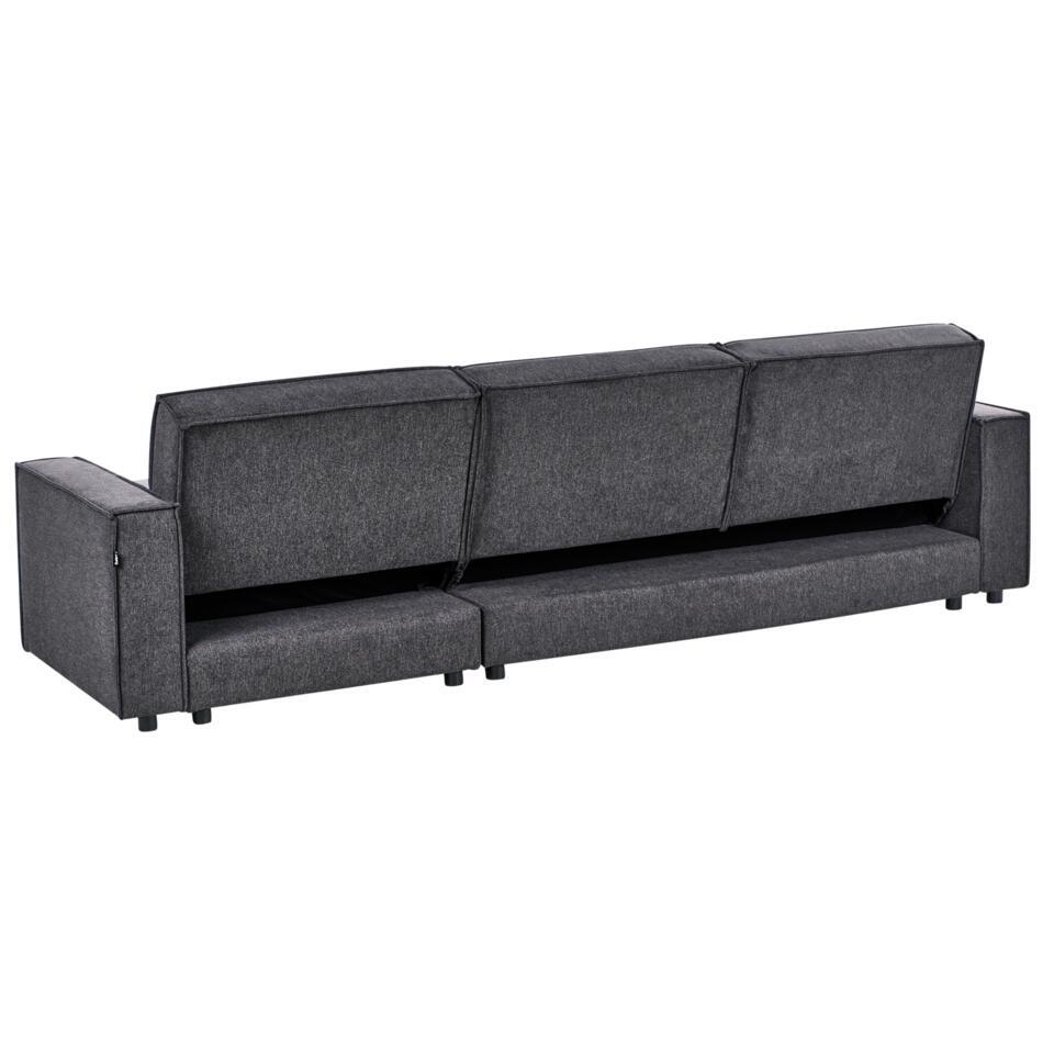 Modulaire driezitsbank. Creëer een warme en uitnodigende gespreksruimte met deze eenvoudig vormgegeven klassieke bank. Dankzij de volledig gestoffeerde rugleuning en het veelzijdige ontwerp, waarbij de chaise zowel links als rechts geplaatst kan worden, kun je je woonkamer op veel verschillende manieren inrichten om een gezellige plek te creëren waar je overdag kunt uitrusten. Met een eenvoudig en snel te gebruiken klik-klak mechanisme kun je deze bank ombouwen tot een comfortabel bed voor twee personen en je vrienden welkom heten om te blijven slapen. Kunststof poten zorgen ervoor dat de bank stabiel staat.
