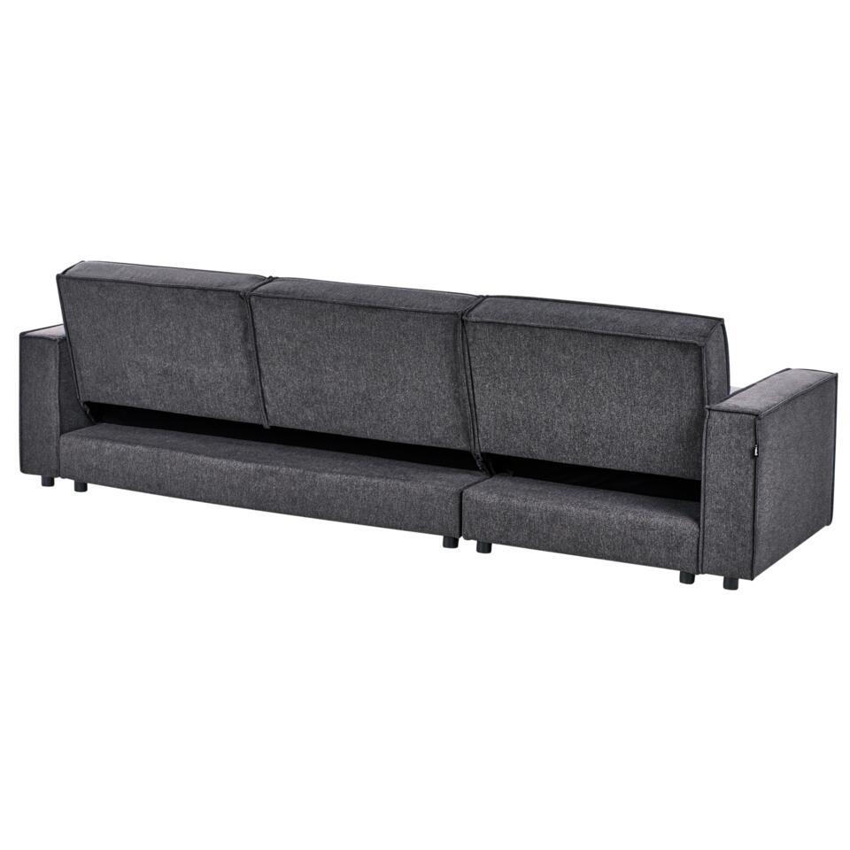 Modulaire driezitsbank. Creëer een warme en uitnodigende gespreksruimte met deze eenvoudig vormgegeven klassieke bank. Dankzij de volledig gestoffeerde rugleuning en het veelzijdige ontwerp, waarbij de chaise zowel links als rechts geplaatst kan worden, kun je je woonkamer op veel verschillende manieren inrichten om een gezellige plek te creëren waar je overdag kunt uitrusten. Met een eenvoudig en snel te gebruiken klik-klak mechanisme kun je deze bank ombouwen tot een comfortabel bed voor twee personen en je vrienden welkom heten om te blijven slapen. Kunststof poten zorgen ervoor dat de bank stabiel staat.
